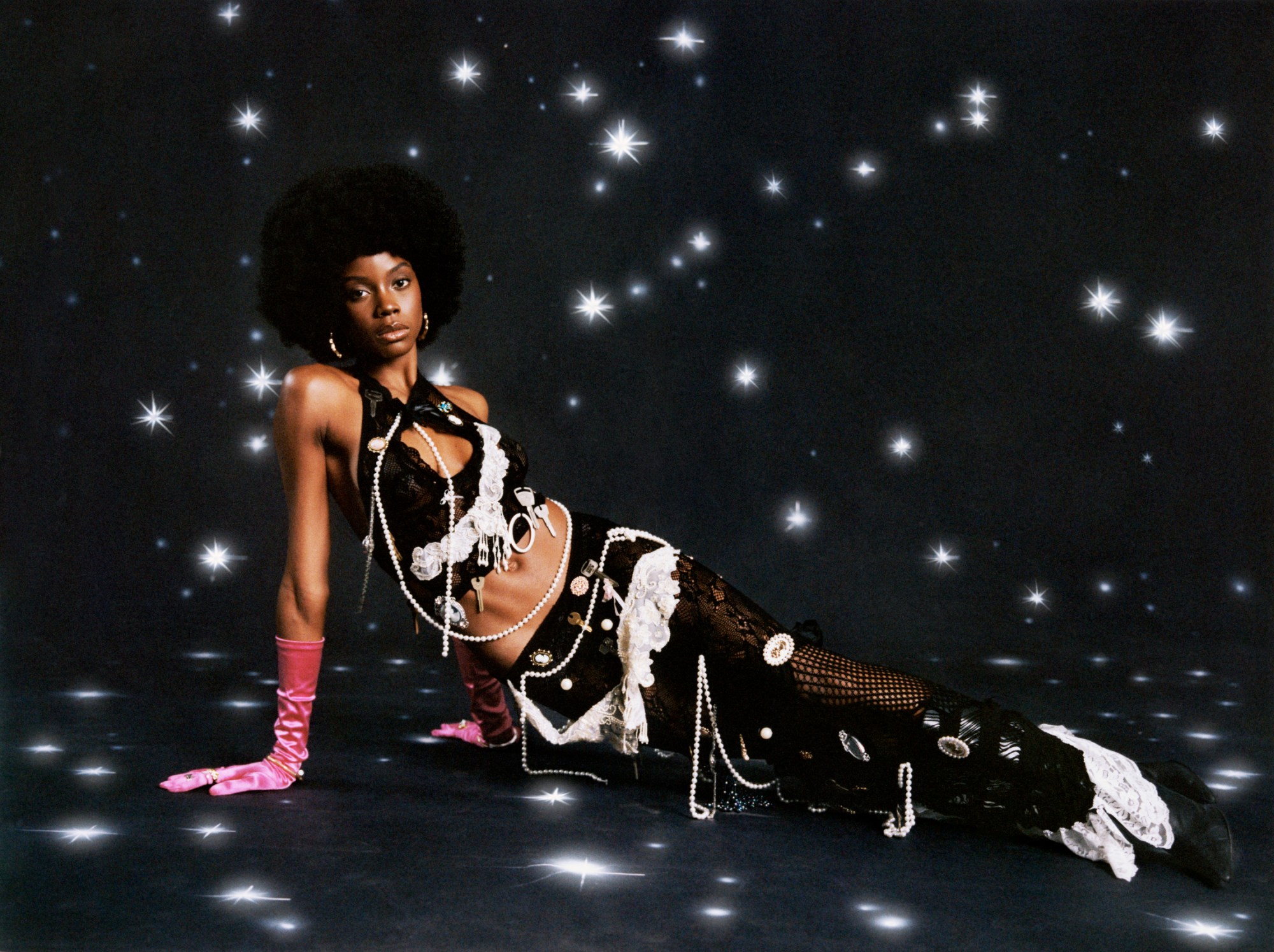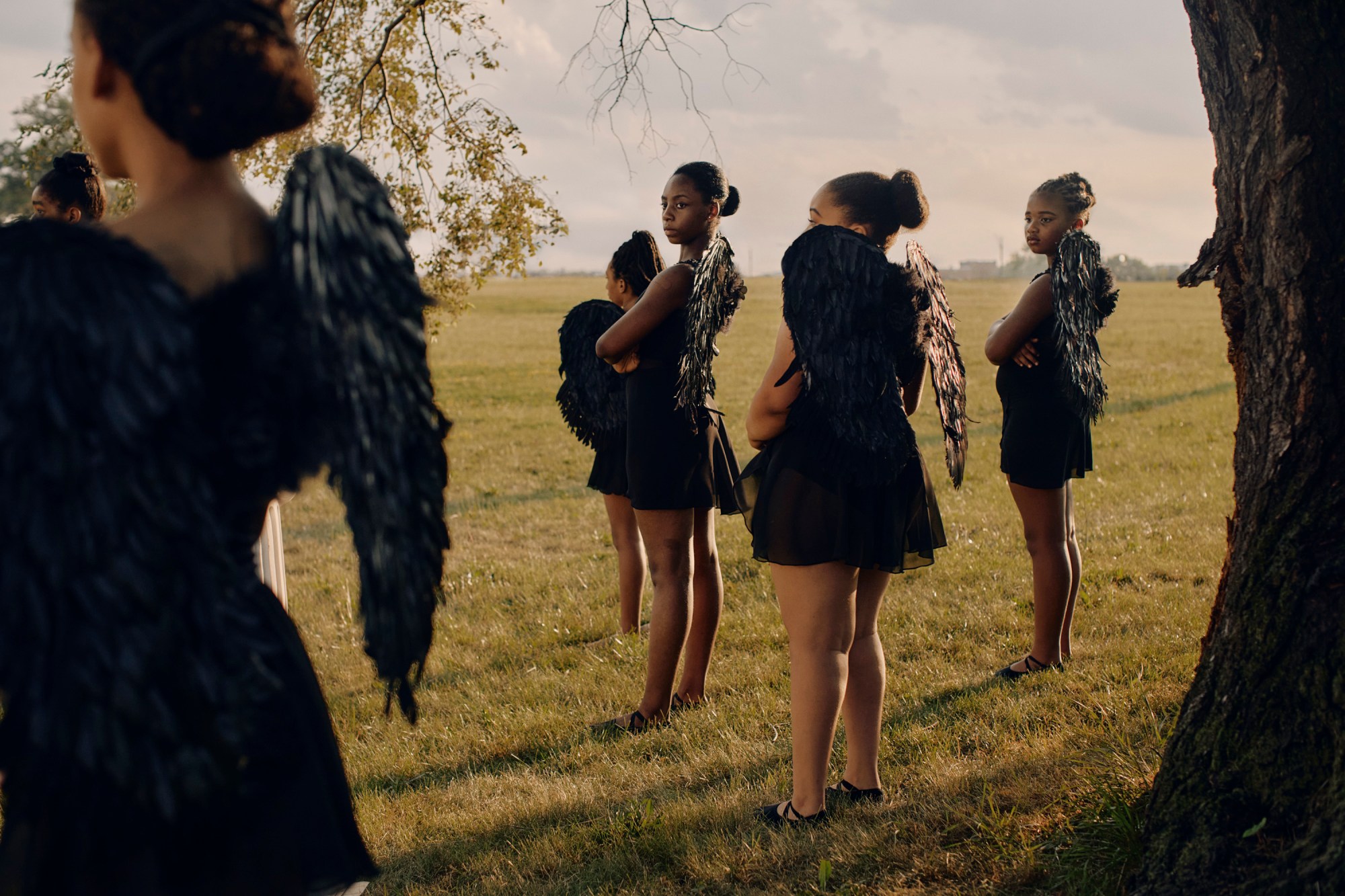 “I’m always inspired by children — what they’re doing, and how their minds work,” Micaiah says, explaining how diving into the past ultimately inspired him to imagine the future. While at home, reflecting on the world post-George Floyd, he sat with the sad reality that his brothers had also lived through the Rodney King riots; his parents, the Civil Rights movement. “I feel like people don’t understand how crucial and how different and how particular it is in America to find the beauty in all that pain,” he says, adding that when you look up ‘American Black Beauty’ on Google Search, it surfaces images of horses.