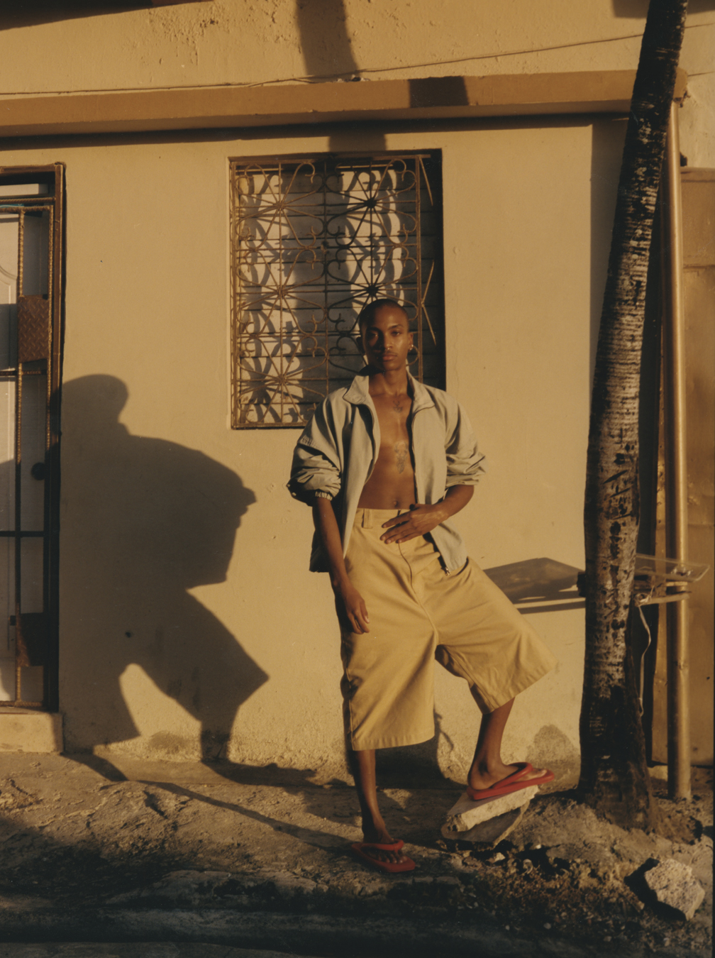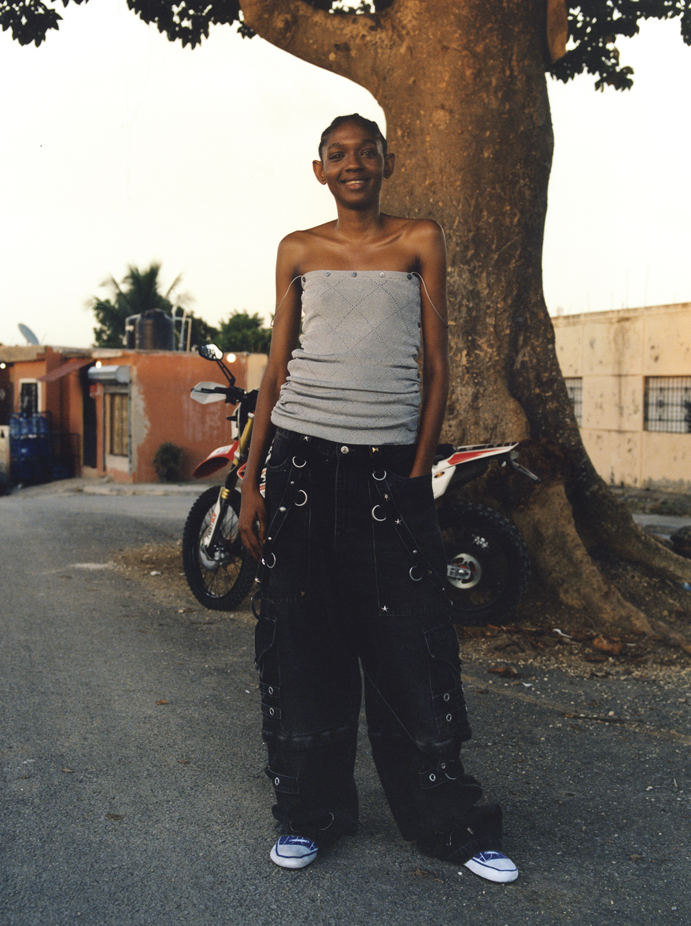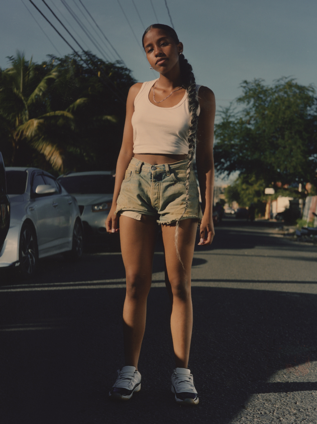 My family was there every step of the way, too. I enlisted my cousin Yanely to produce and help with casting. My cousin Gabriel helped Milton style, my aunts Milagros and Josefina opened their doors so we could have a basecamp, and my uncle Leo drove us around. The day we arrived in the Dominican Republic we took off on motorcycles, to find spots in the neighbourhood where we could shoot and get to know the kids we were photographing, and while riding around it started to pour with rain. In a big city, surrounded by concrete and stone, it’s easy to see the rain as a nuisance, but here it is also re-energising; life falling from the sky.