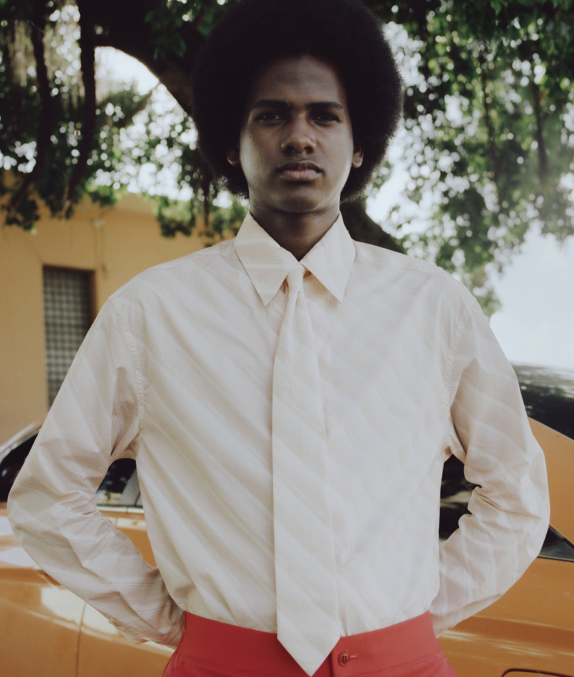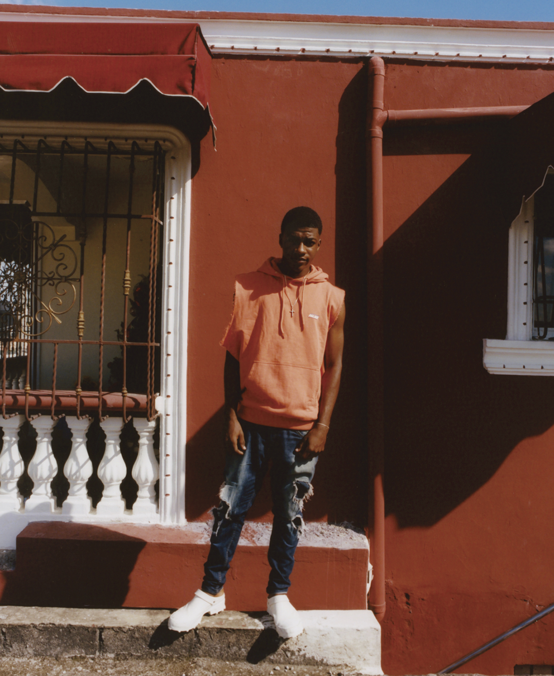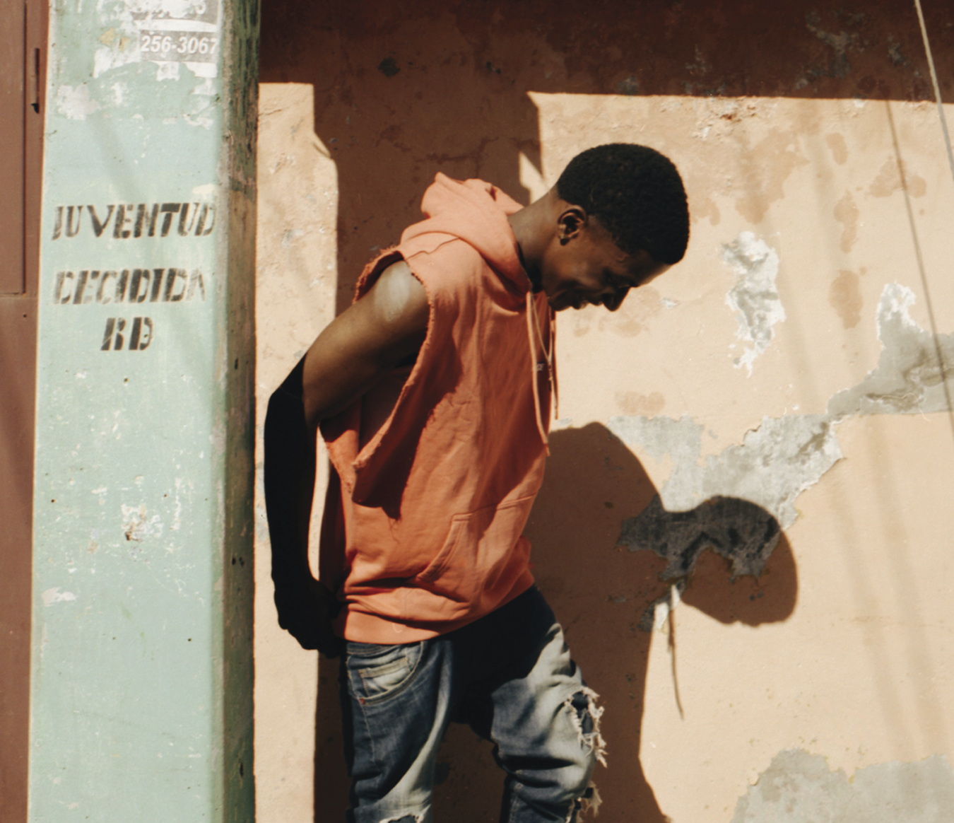 My family was there every step of the way, too. I enlisted my cousin Yanely to produce and help with casting. My cousin Gabriel helped Milton style, my aunts Milagros and Josefina opened their doors so we could have a basecamp, and my uncle Leo drove us around. The day we arrived in the Dominican Republic we took off on motorcycles, to find spots in the neighbourhood where we could shoot and get to know the kids we were photographing, and while riding around it started to pour with rain. In a big city, surrounded by concrete and stone, it’s easy to see the rain as a nuisance, but here it is also re-energising; life falling from the sky.