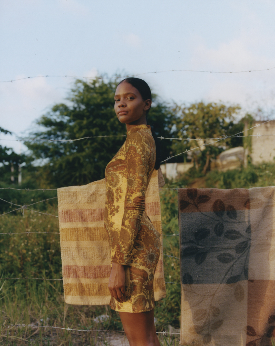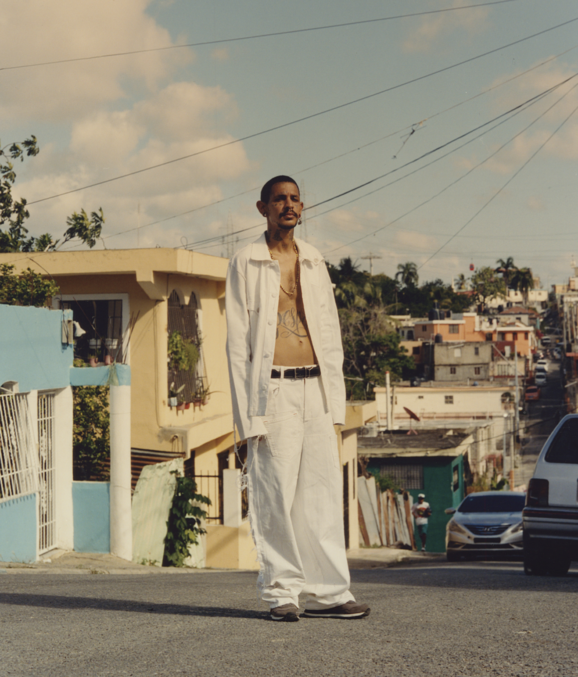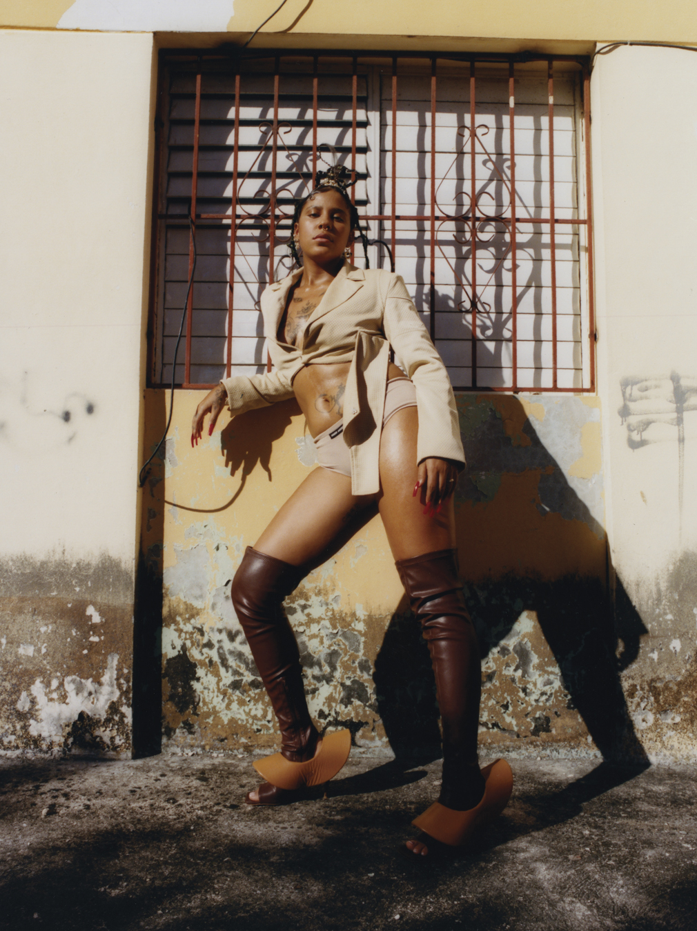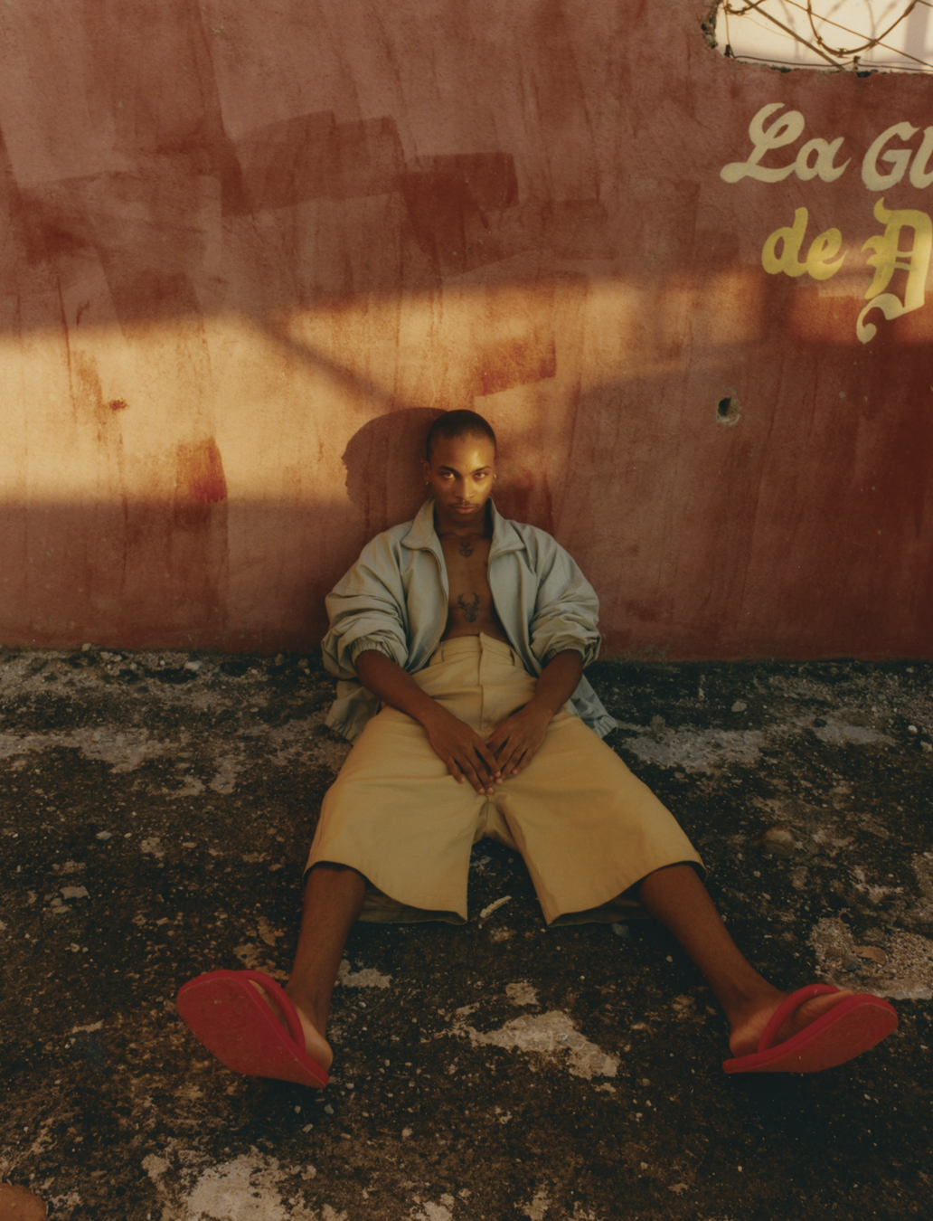 I started researching the barrios I used to visit as a kid and learned about teteos – clandestine street parties that began after the pandemic. We discovered Tokischa and her music, and I was instantly drawn to her. In many ways we share the same scars, and it’s healing for me to see her shine despite her lived experiences. I feel pride when I see her challenging everything that is expected from a Dominican woman. Tokischa introduced us to a design collective named Tiempo de Zafra, founded by a couple who returned to the Dominican Republic after growing up in the US. Their studio was teeming with artisans of all trades making one-of-a-kind sustainable garments by upcycling second-hand pieces. Several pieces we shot were made by them, and it was there we also met Railin, who ended up doing everyone’s hair for the shoot.