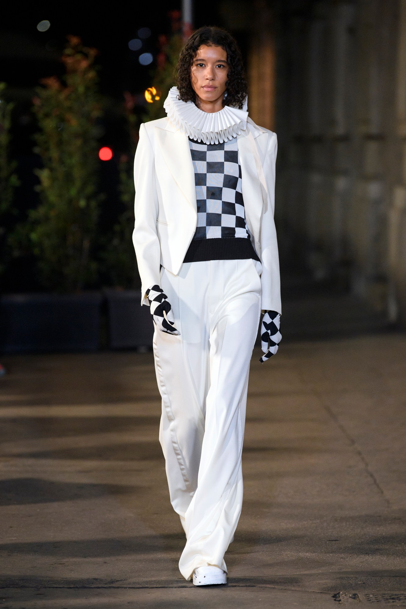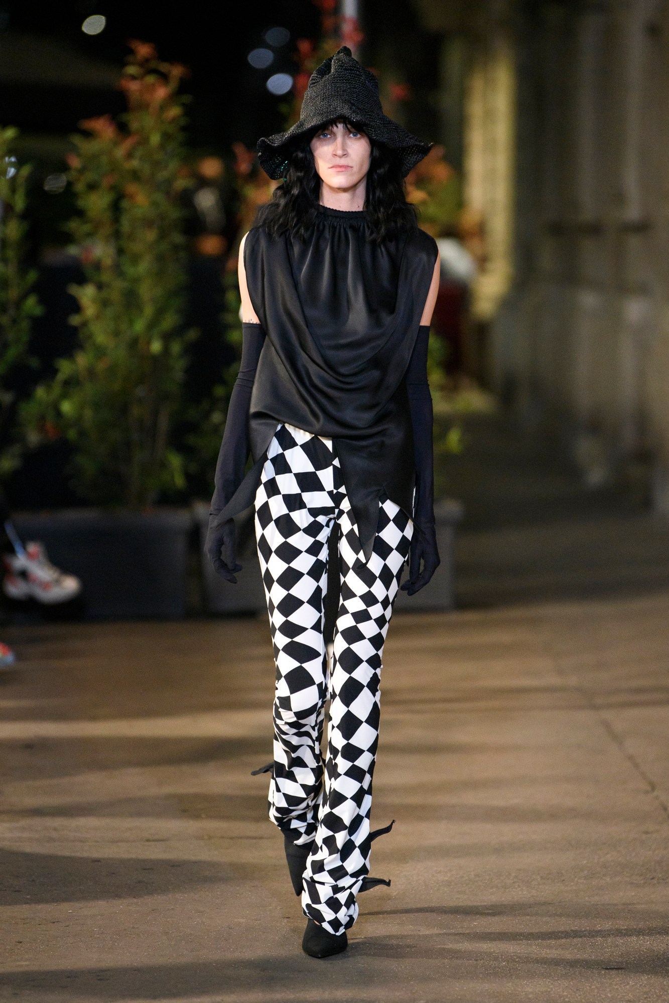 With its range of motifs, techniques and references, this was a pretty eclectic collection, where it found its throughline, though, was in a sense of breezy irreverence, which shone through nowhere better than in this season’s sleeve story. Lopped off and reattached to pleated blouses, the side seams of tailored trousers and rubberised jeans, and even to the back panel of a Marigold yellow leather jacket, which, when tied up, cinched in the waist. As quirky as these accoutrements may seem, they spoke to a sensibility that has long been at the house’s core: the commitment to creating clothes suitable for the everyday that are elevated into the supernormal by a skewiff sense of wit, humour and fun.