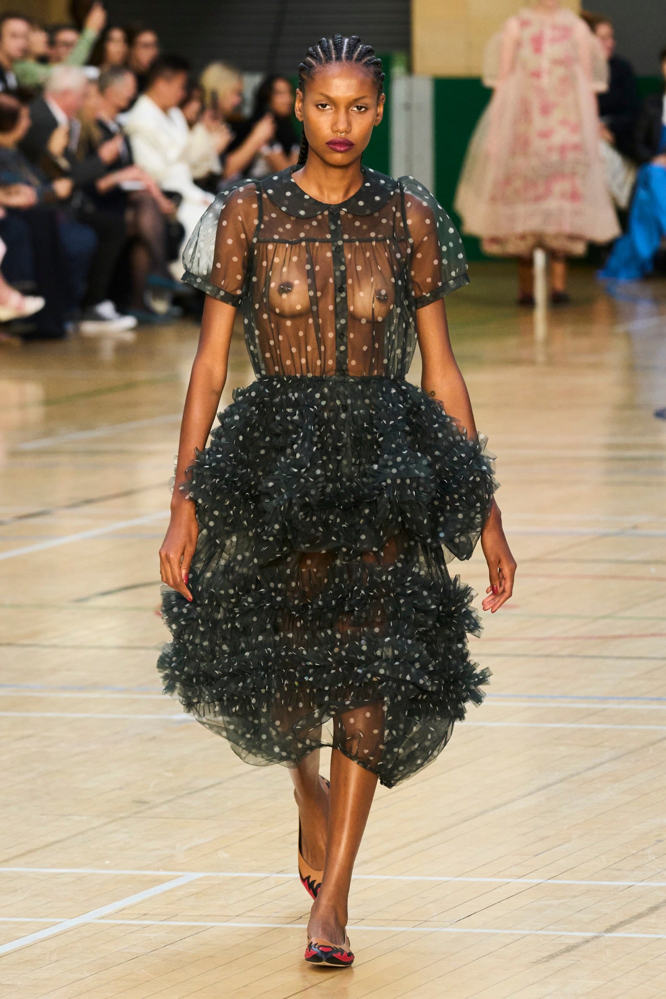 But also, and as always with Molly, it was about how people may wear her designs IRL. And so there was a rugged reality to the opening looks, pretty dresses worn over jeans and with cowboy boots, or with a simple T-shirt — the clash here was about the contrast between silhouette and material too.