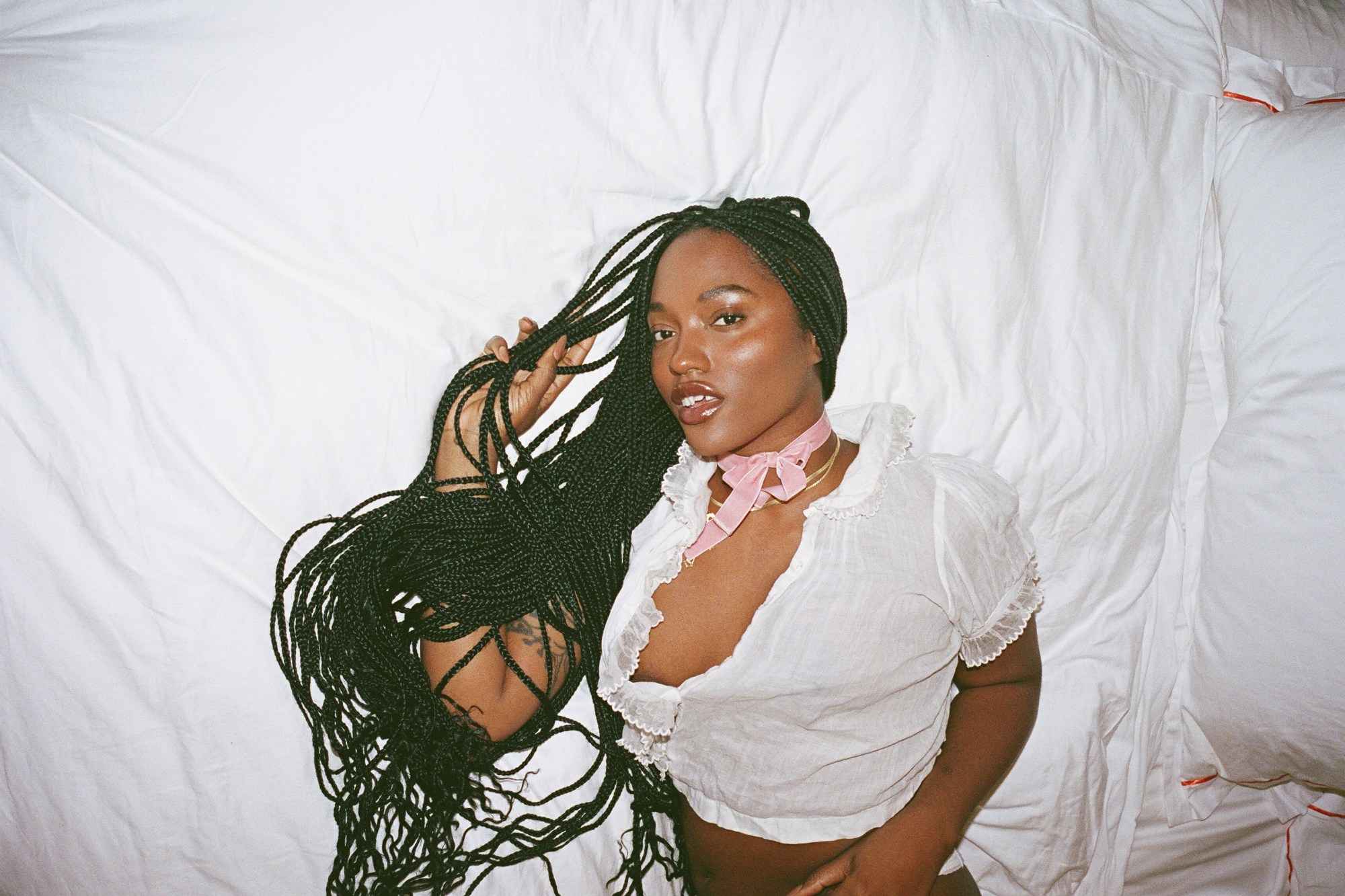 “The photograph is obviously the final product, but what really brings me joy, and part of the art, is sculpting with intimacy, that intimacy you experience when two girls are sitting in bed sharing their secrets,” the 27-year-old photographer says. “Based off of personal experiences, I didn’t always feel safe in the bedroom, and that conversation would happen with some of the girls that I was photographing as well, which is truly heartbreaking… I feel safe in a bedroom again, and my level of honesty and openness to just create something that was very special for women and girls, that created a safe space.”