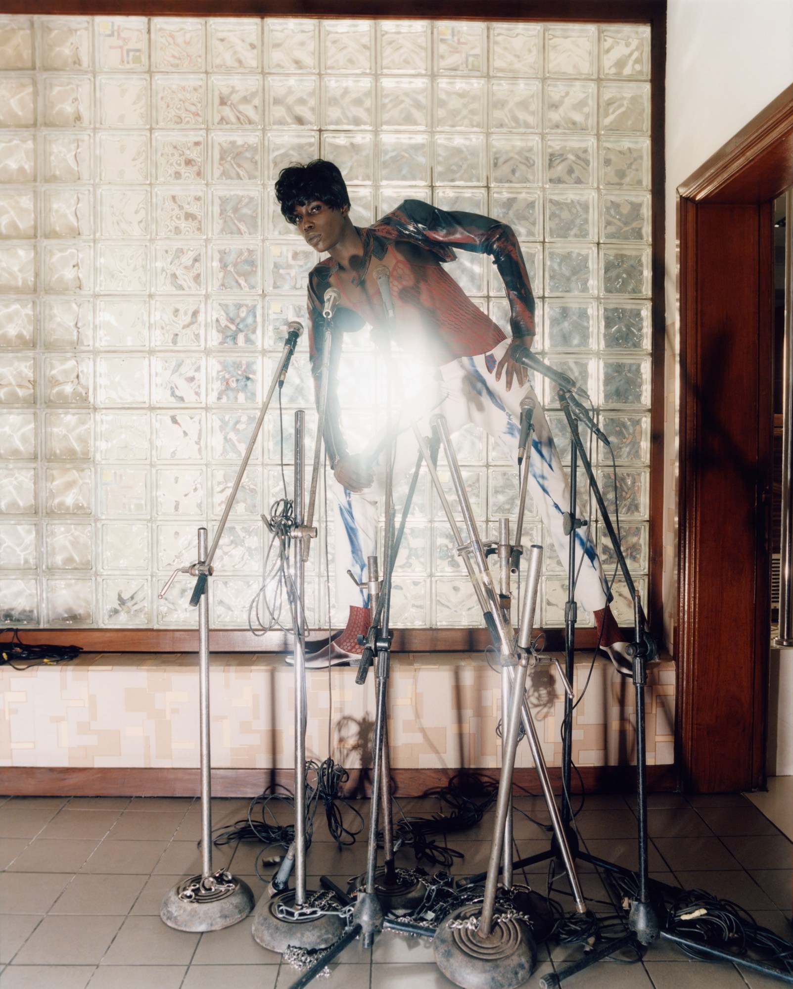 “Sex. More Sex. More Sexy,” Mowalola Ogunlesi says with a laugh, when asked to give a hint about the aesthetic direction of her next collection. It will be her first since dropping out of Central Saint Martins, and her first on the London Fashion Week schedule. “More sexy” will be quite a feat, considering her BA graduate collection was pretty sexy. Titled Psychedelic, and taking inspiration from 70s and 80s Nigerian rock music, it included tight leather trousers cut low with lacy lingerie peeking out, nipple-grazing crop tops that skimmed the body and glistening abs. It was a riot of intense colour and sensuality, a joyful exploration of African male sexuality, cut free from the stereotypes that so often cloak it.