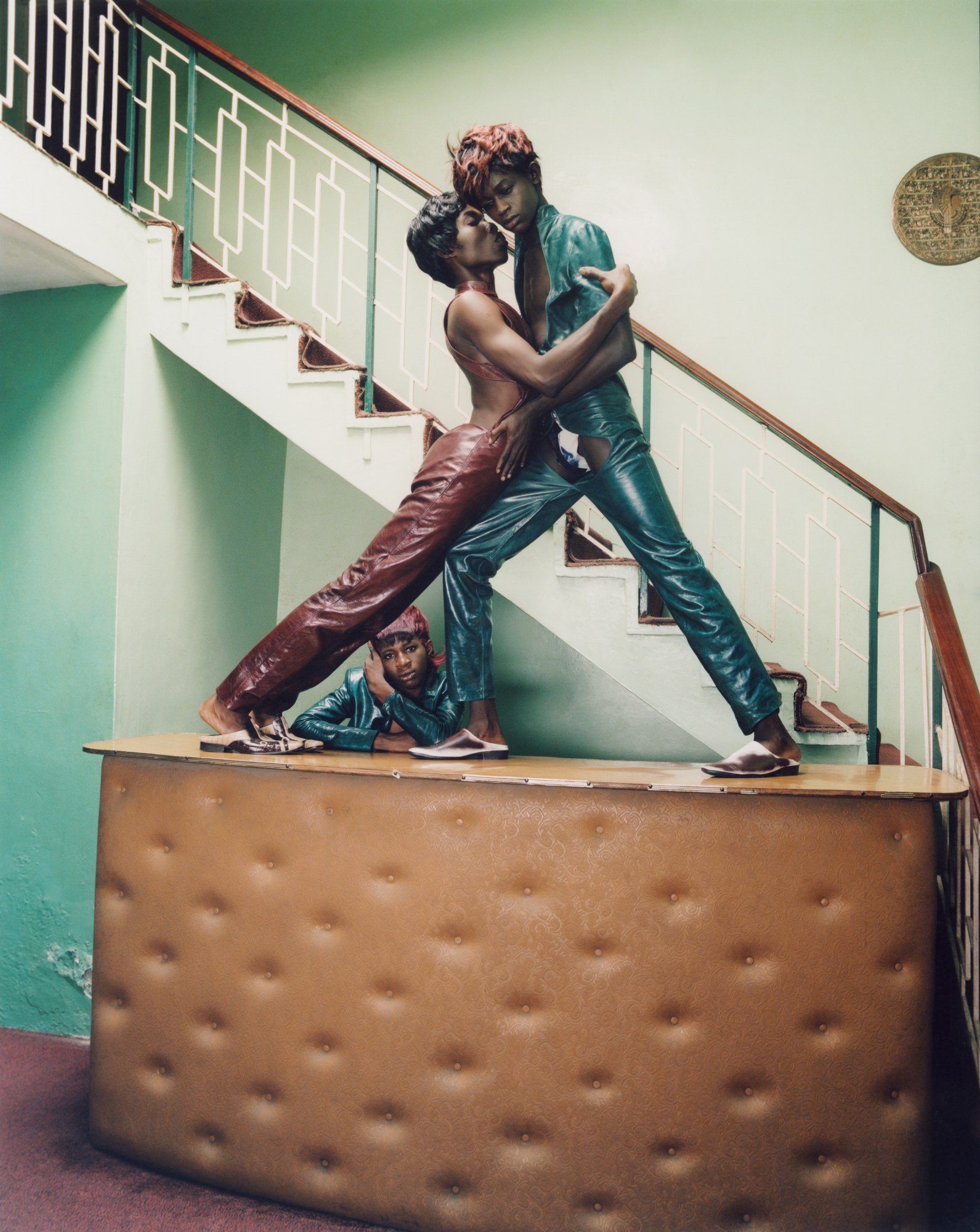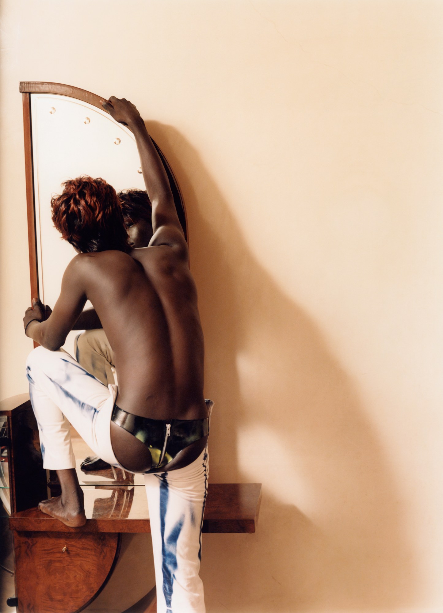 Gender fluidity comes through in Mowalola’s pop cultural inspirations – she’s thinking about Prince and André 3000 when it comes to star power. “I feel like those kind of men are very confident with who they are. I love that and I want that to be in everyone. We get so caught up in these social divides that boys must be this way and girls must be this way. I feel that everyone’s on the gender spectrum, so the more we can break it down and get back to individual wants and desires, the more we can push society forward.”