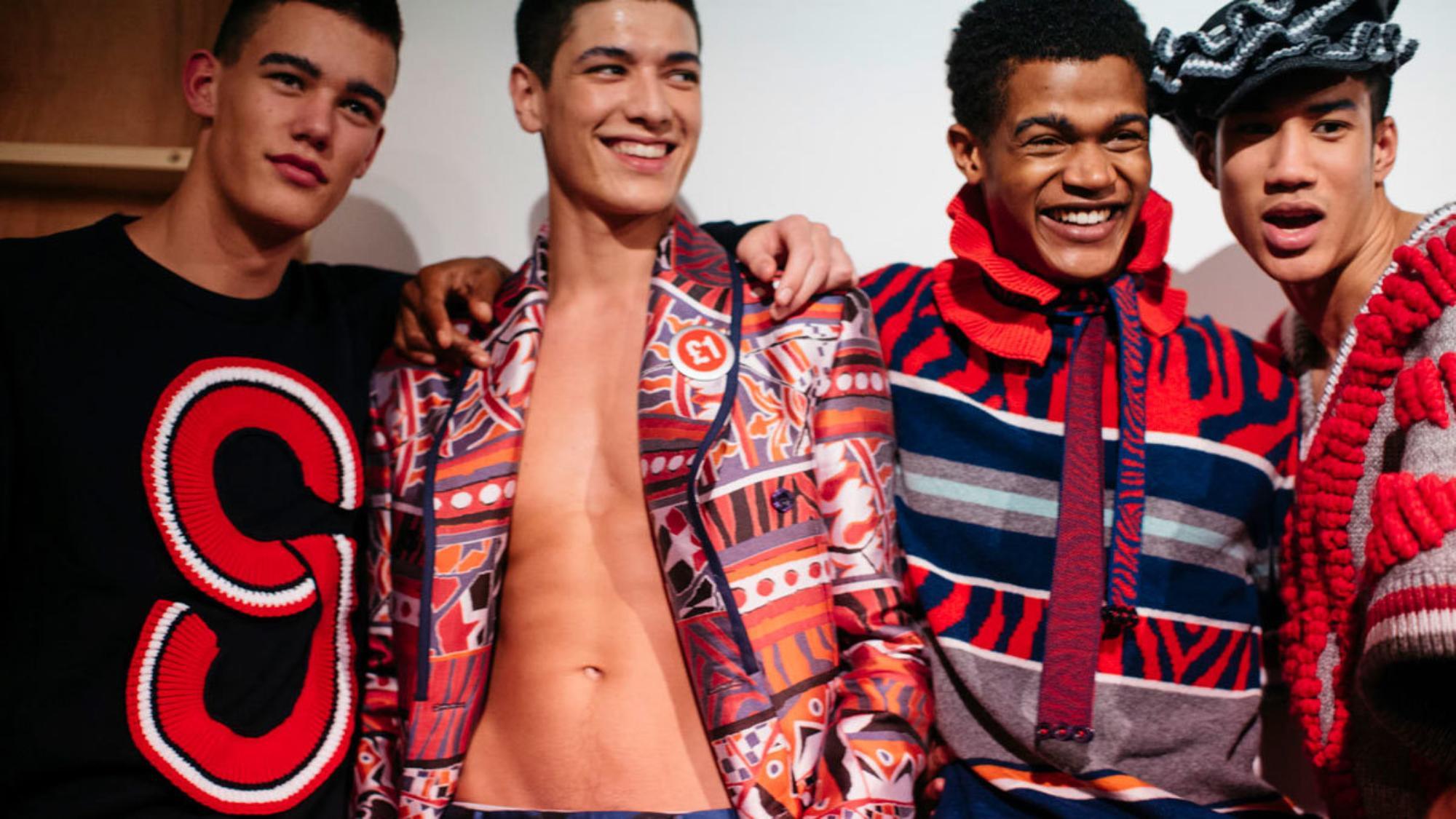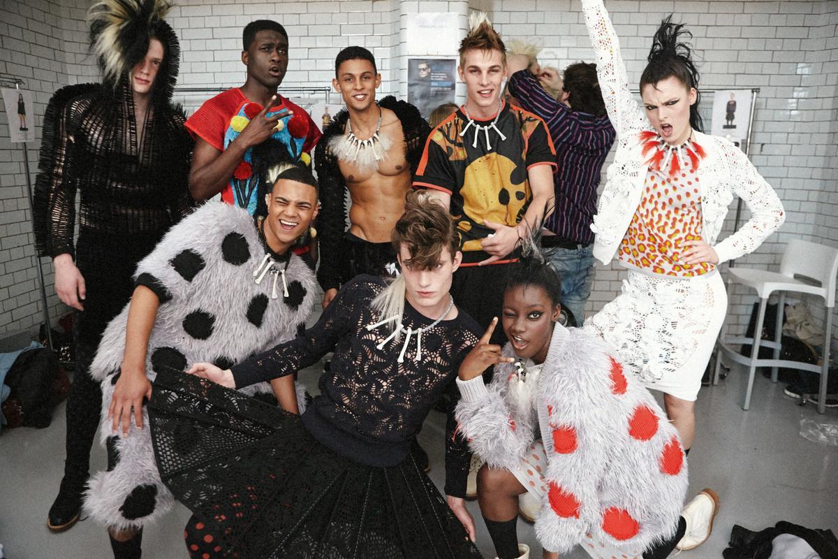 Sibling launched in 2008 as a menswear brand, quickly becoming known for dressing the hunkiest male models the industry had ever seen in sporty knitwear styles, from toile de jouy patterned hoodies to enormously chunky knit pom-pom scarves and leopard pattern cardigans, often topped off with gigantic headpieces and surreally large teddy-bear accessories. Later, they added womenswear, with subverted punk-prim twinsets, bodycon knit dresses, cute denim and a gorgeous, diverse cast of models grinning from ear to ear.