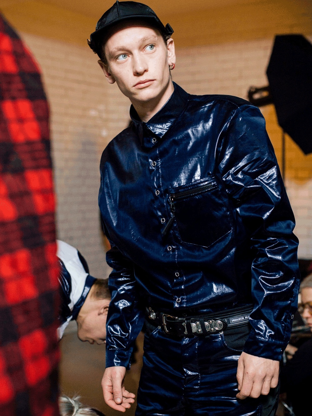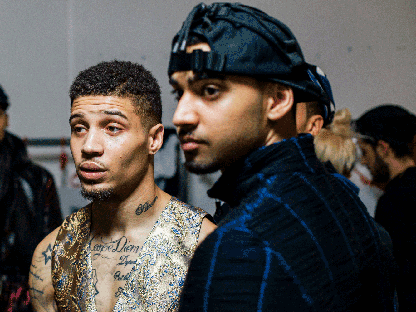 Shouts of applause in the audience, backstage celebrations and selfies that the mostly street-cast models were requesting with Mazhar, showed what a loved character he is, and how much he’s connecting with a core audience. That, coupled with his Vitoria’s Secret collaboration and work with musicians from Lady Gaga to Skepta, shows he’s creating wider commercial appeal. But the reason why he’s such an important voice on the current British menswear scene was summed up best in his notes. It’s about “a more confrontational celebration of a vein of British culture often grossly overlooked, or marginalised by the media.”