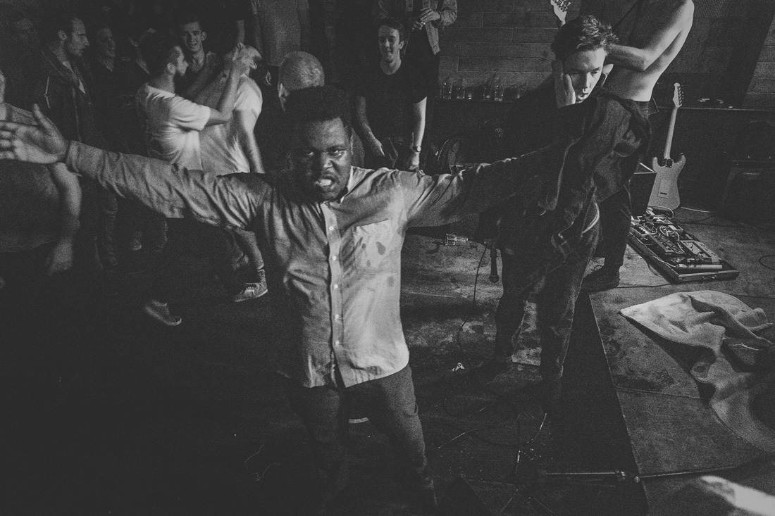 “The most straight-forward song: driving bass, a simple guitar line and military drumming. It allowed me to explore some important themes without being overtaken by the sonics. The opening lyrics came from talking to a friend about misogyny and social exclusion in art. We then took it forward politically to discuss the tragic case of David Clapson’s death in Stevenage and the growing number of people who are suffering at the hands of government policy. We tried to move away from some of the lofty, egotistical proclamations or twisted Nietzsche quotes prevalent in contemporary ‘punk’, in favour of our own knuckle-dragging honesty.”