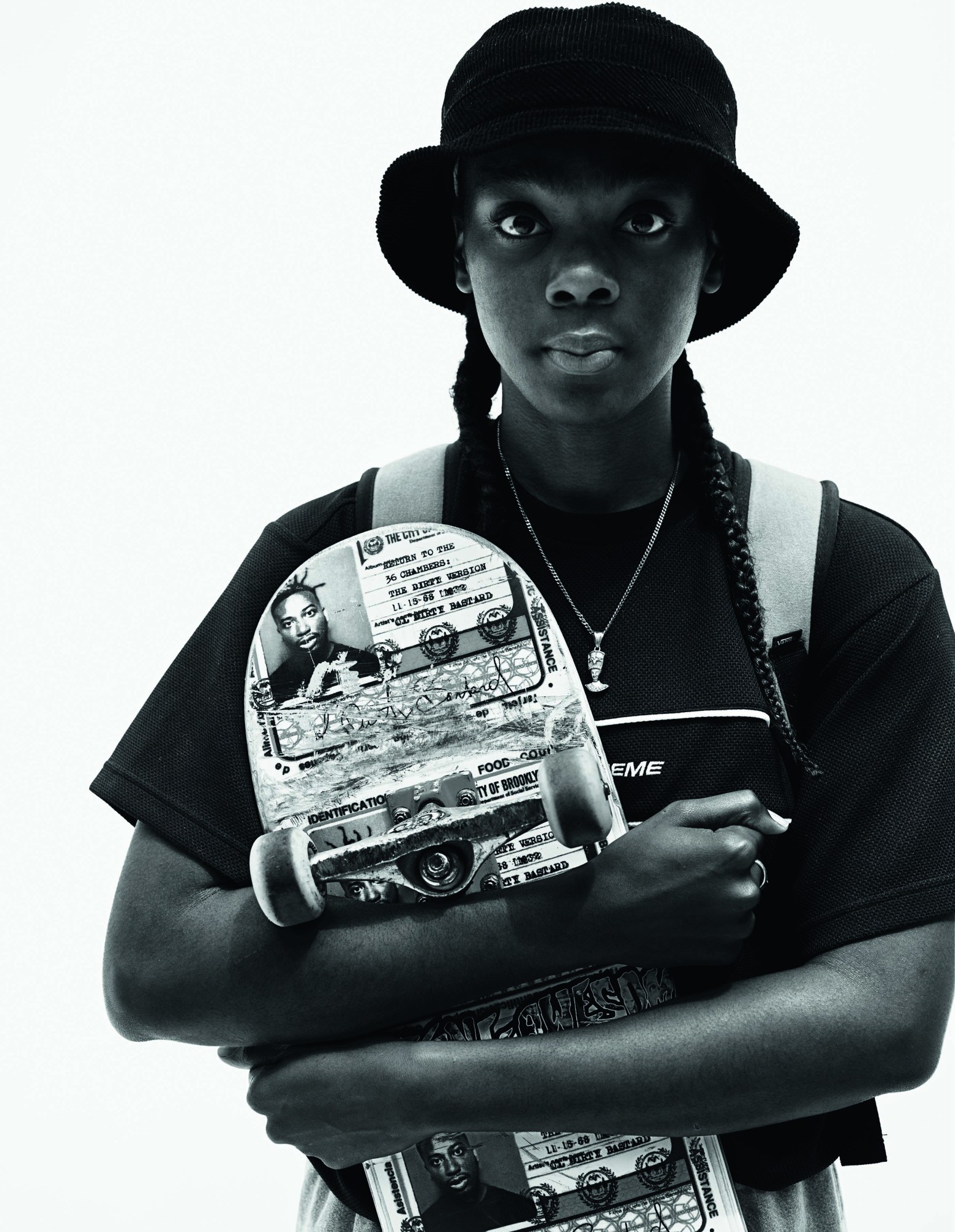 Can you introduce yourself… I’m Beatrice Domond. I’m a pro skateboarder and I ride for Fucking Awesome, Supreme, and Vans. There aren’t a lot of female pro skateboarders? No but it’s growing. Thanks to Instagram girls are getting more visibility and more girls are getting into it. How does it feel to be the first female skater for Supreme? I feel pride. I’m blessed to be here because I’ve come a long way. Where did you grow up? In Florida with my mom and dad and three siblings. My older brother was amazing at everything but he never skateboarded, so it became my thing. When did you start skating? Like seven, super young. Then at 14 I just realised realised like, I’m going to be a pro skateboarder. I was so youthful and naive. Do you think it’s important for you to be a role model? I’m still trying to figure myself out and work out my career. Hopefully people think I’m doing a good job. I’m just trying to do my thing.