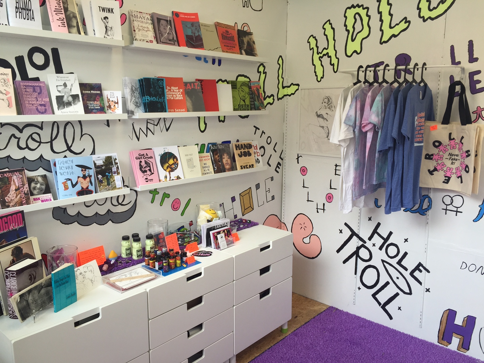 We’re looking for: feminist women of color who write, create art, make products, produce zines; gay guys who wish it was still the 70s; queers; hairy women; sex educators; people in any of these socioeconomic groups that do screen printing or risograph printing. They can email us at trollholenyc@gmail.com or stop by the store and say hey. Our hours vary, check Instagram.