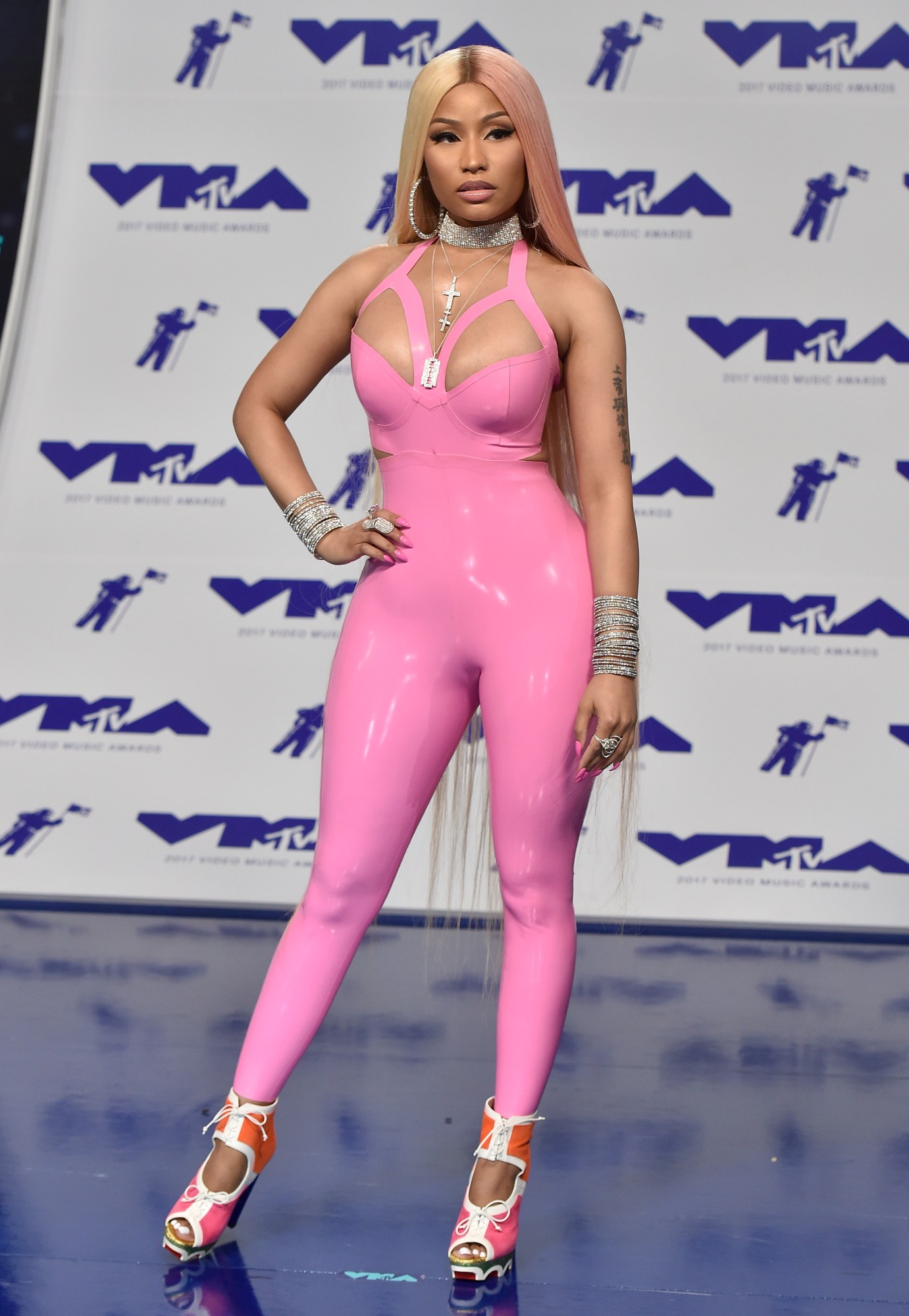 Speaking of boudoir garb: Nicki donned head-to-toe latex at the 2017 VMA’s, both on the red carpet and on stage, where she performed her feature on Katy Perry’s “Swish Swish”.