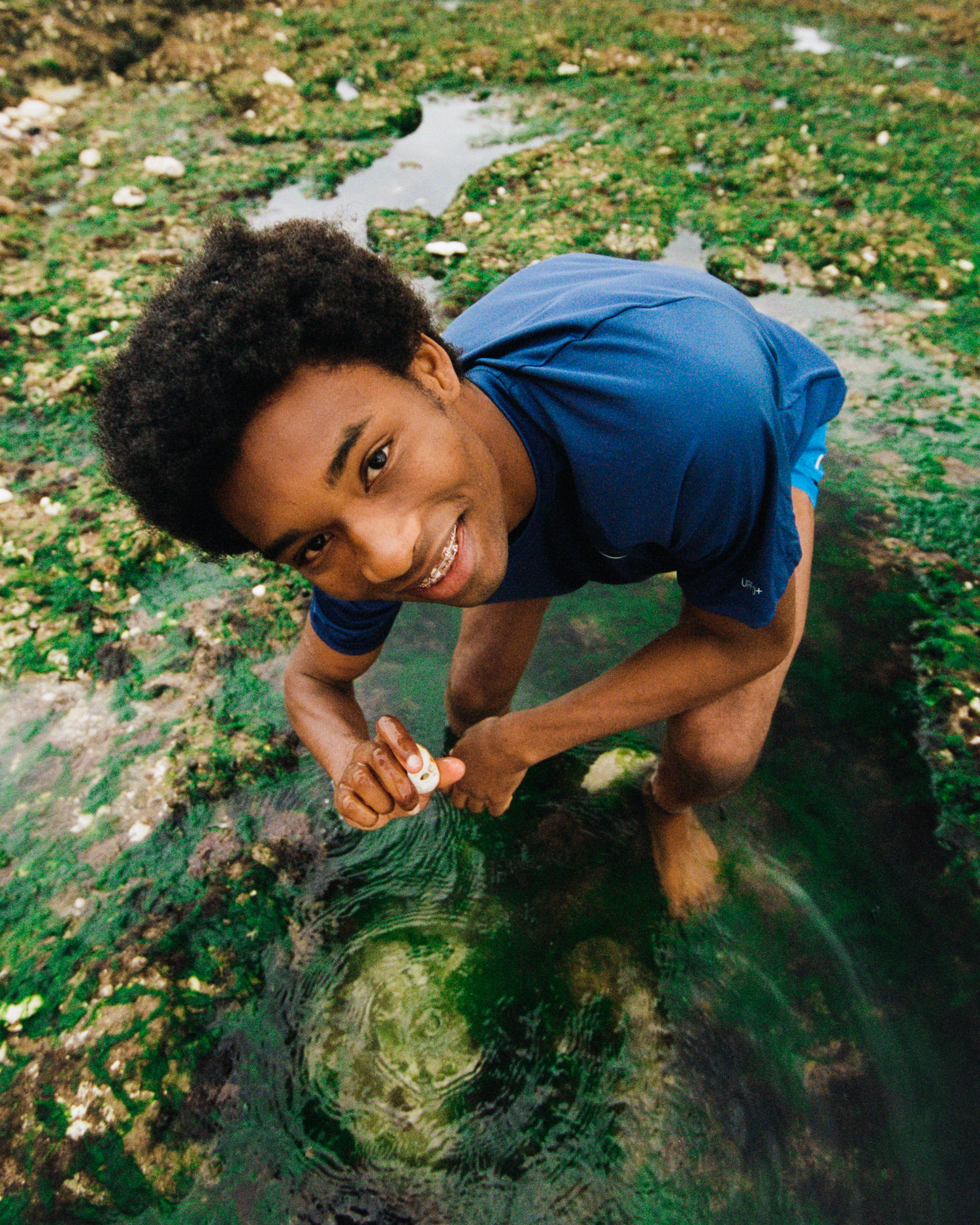 “Putting young Black men at the forefront” was, Isabella affirms, therefore paramount. “Our first point of call was to cast a group of young men who looked similar to the communities we are trying to engage with,” Tayler echoes, noting the absence of young Black men from traditional swim campaigns. Shot on an English beach at sunrise, the image series captures young Black men experiencing the liberating capacities of open water swimming – a feeling that the campaign’s subjects experienced firsthand. “Standing on a chalk boulder at 5am watching the sunrise was very memorable,” Tisloh Danboyi, one of the campaign’s four stars, says – it was an experience that opened his eyes to “the joy of water”.