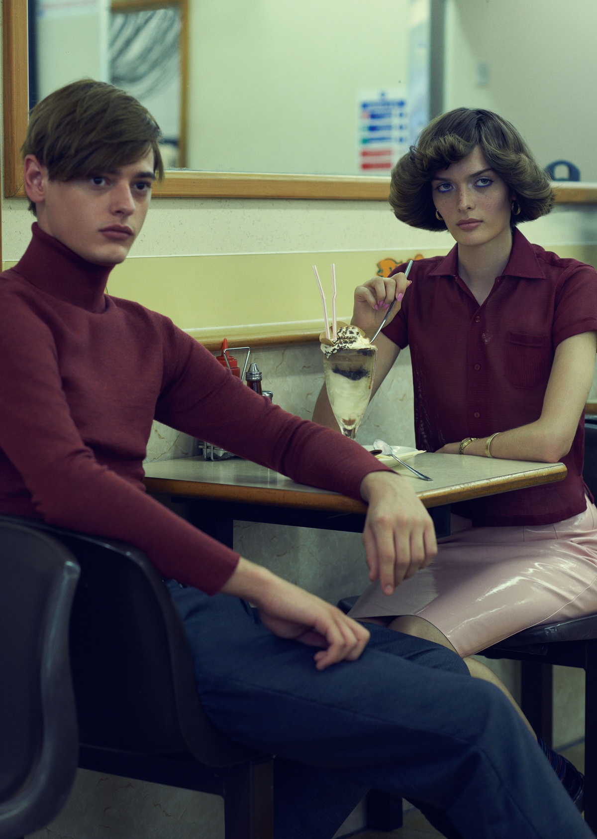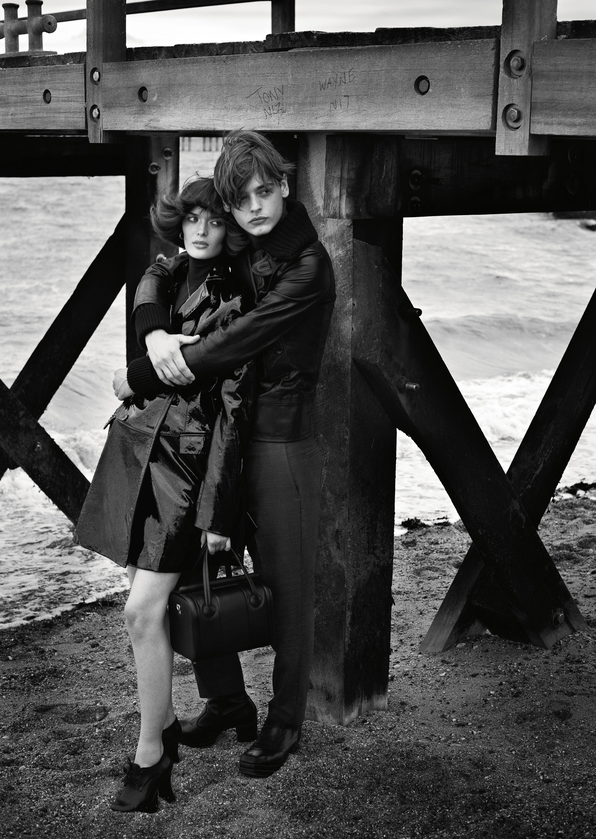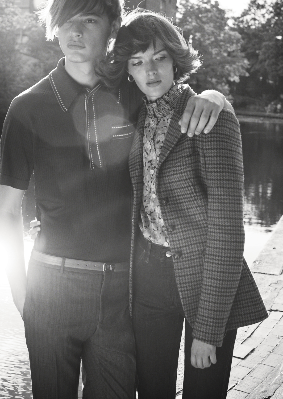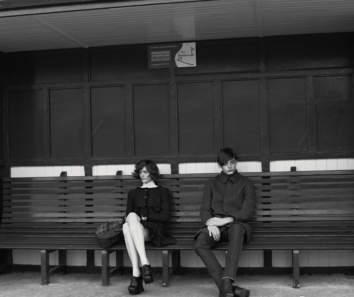 Sam wears coat Salvatore Ferragamo. Roll neck Agnona. Bag Marc by Marc Jacobs. Shoes worn throughout vintage at Rellik. Jacob wears jacket Joseph. ?Roll neck Lyle & Scott. Trousers Sandro.