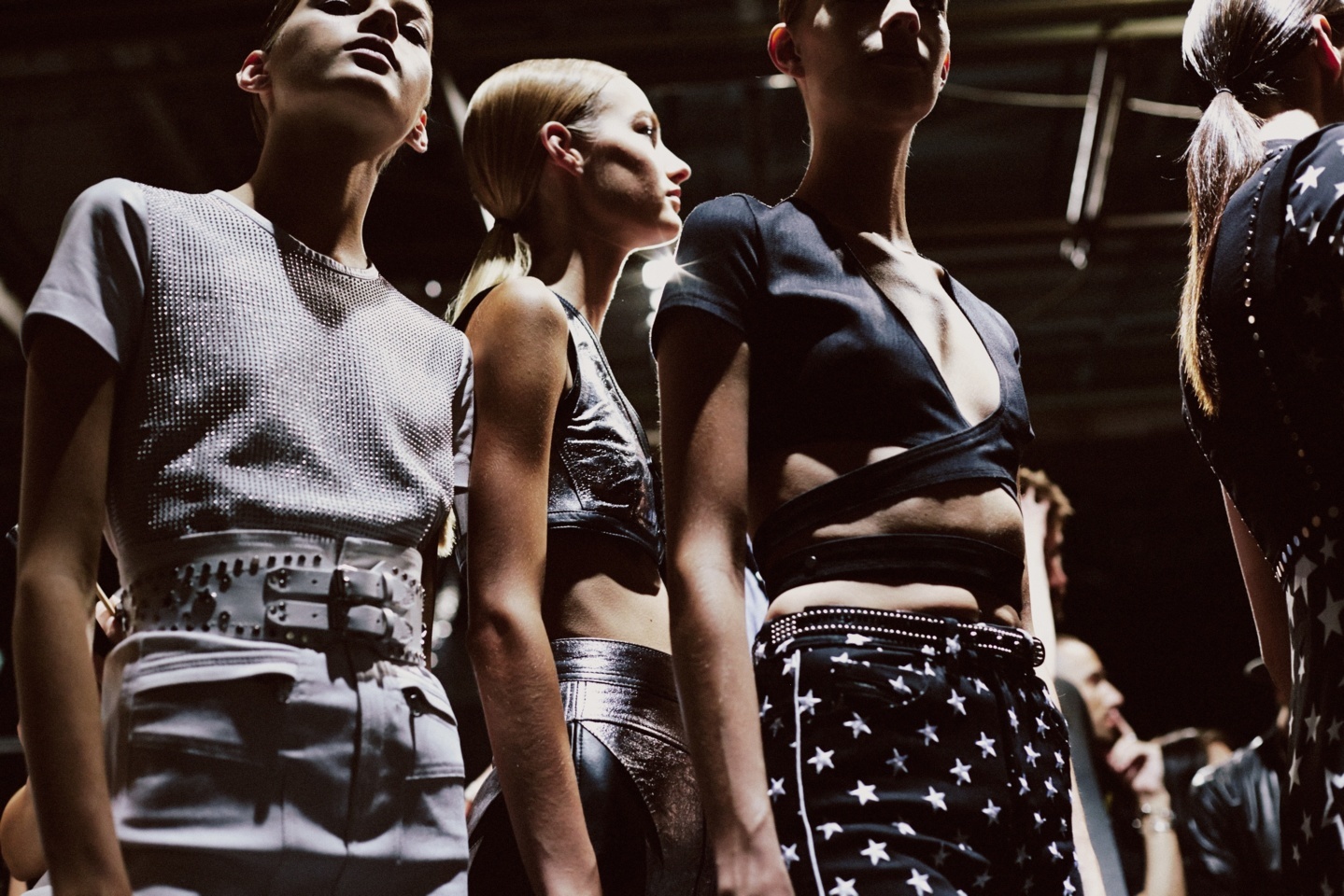 Although treading in familiar territory with studs and grommets, Andreas again looked to iconic performers to isolate and fine tune his embellishments: “I found a picture of Gary Numan, another of the iconic people I was looking at, and he was wearing this studded leather jacket with little stars,” he explained. “The studding and the metallics are very important in the collection. It’s something I played with for four seasons already, but using the star just felt like something a little bit more playful and animated, yet there’s still something very iconic about it.”