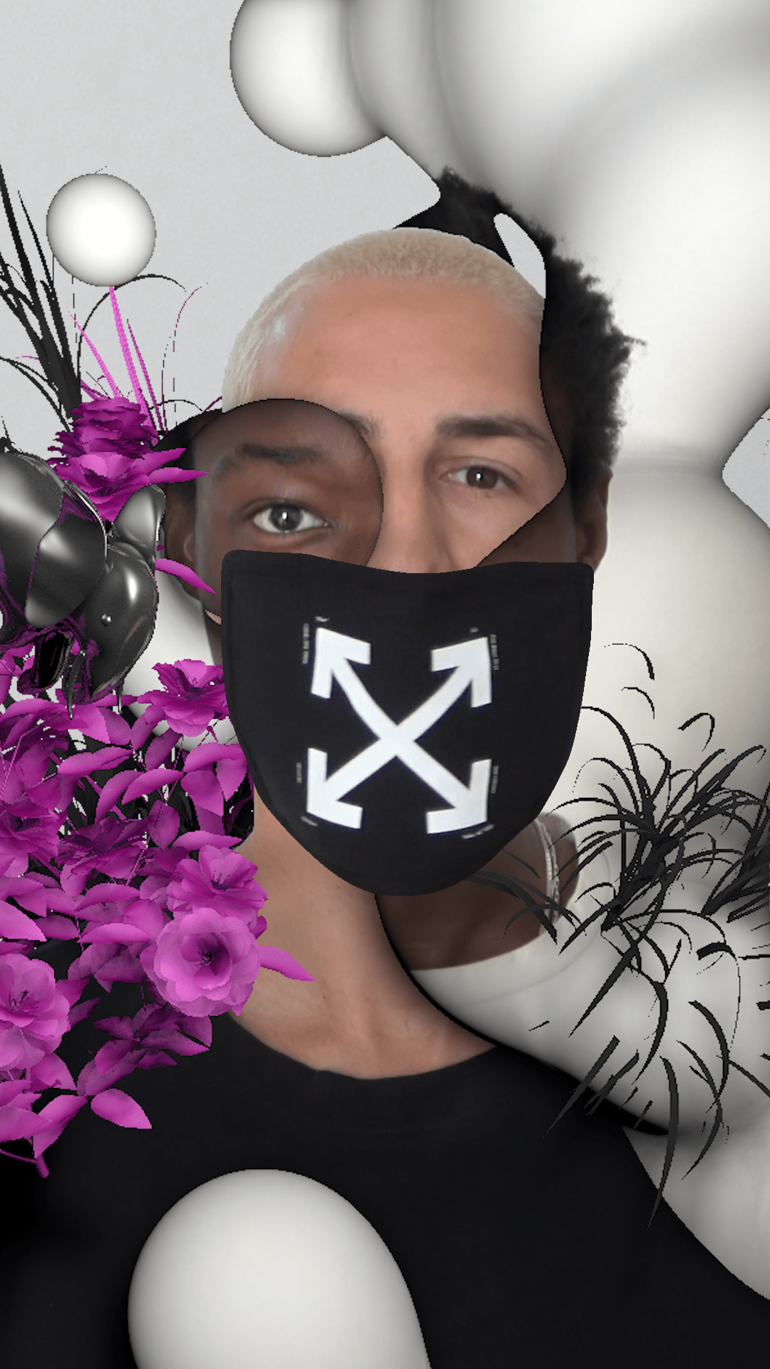 Andy Picci (@andypicci) born in Switzerland and based in Paris, has made himself known over the years for his surreal and dreamlike 3D lettering, and his out-of-this-world Instagram filters. During the quarantine he transformed his Instagram feed into a sort of a collective diary, expressing through his creations the ups and downs that we all experienced during the lockdown. His reinterpretation of Off-White™ face mask is in keeping with his surreal imagery: “On an emotional level my artwork refers to the Masked Philosopher. So the mask, which in the past was a symbol of dissimulation and limitation, today is an opportunity for freedom, to express intimate and uncomfortable thoughts without fear of the judgment of others.”