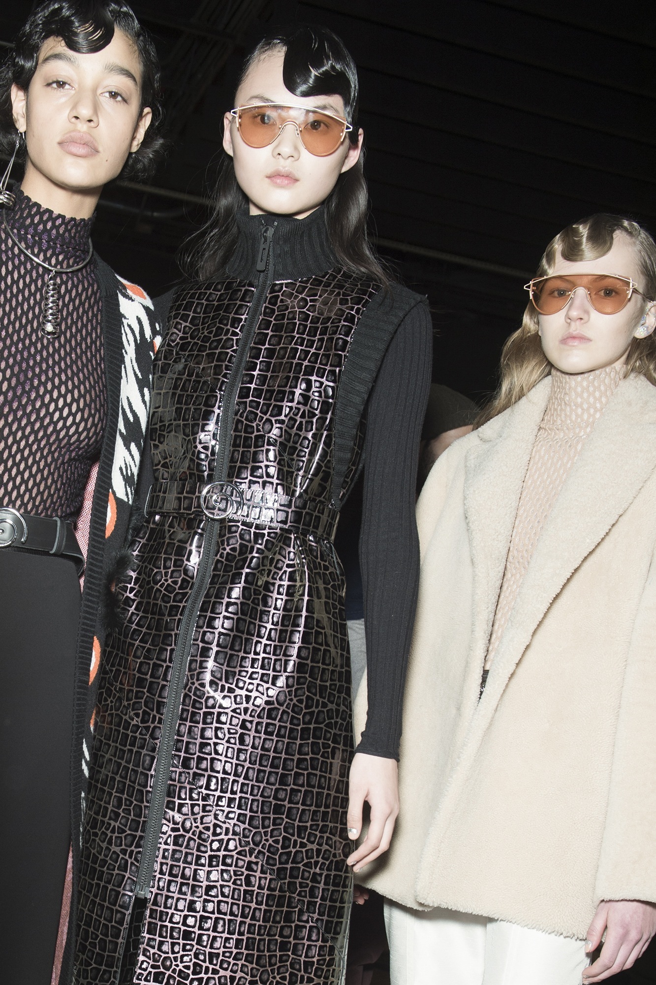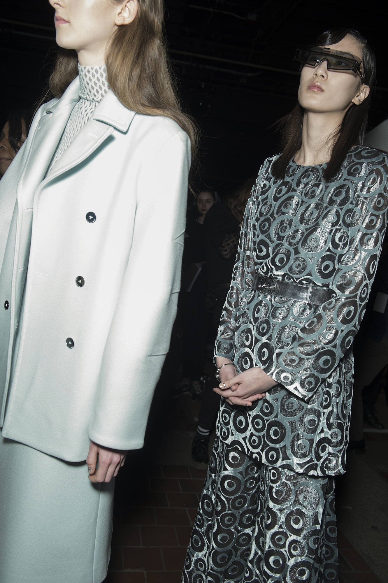 Is there some sort of sci-fi fashion club that convenes on the UC Berkeley campus? The California college has produced a few notably chic futurists, including Patrik Ervell — whose specific menswear language is versed in a techy but romantic modernism. Rodarte designers Kate and Laura Mulleavy are also alumna. They’ve captivated us with magic, feminine visions of a brave new world (and on one occasion, taken an enviable trip to the Star Wars archive). Last night, Carol Lim and Humberto Leon decided they wanted in on their former classmates’ sci-fi fun and showed an Opening Ceremony collection rooted in retro-futurism.