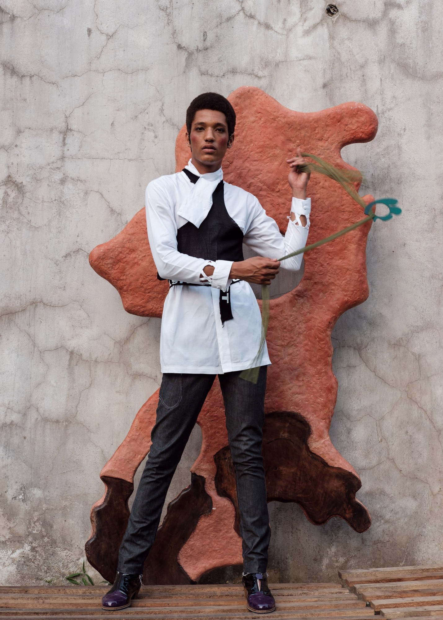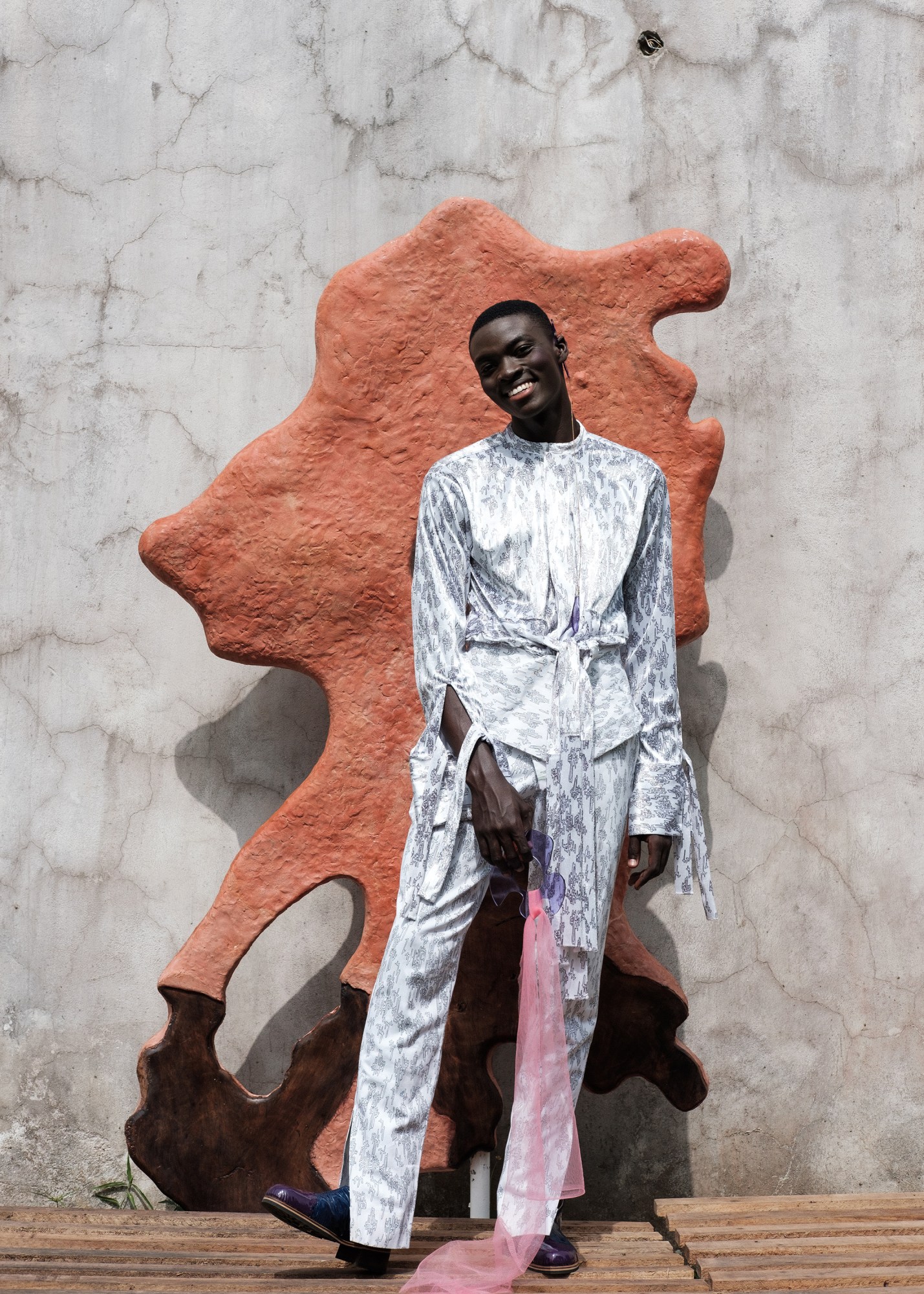 When he was 17 years old, Adebayo Oke-Lawal wrote an essay for a writing class entitled An Orange Boy. Growing up in Lagos, Nigeria, and attending an all-boys high school, he had grown frustrated with the hyper-masculinity and prescribed identities surrounding him. He wanted to open a conversation about what it could mean to break with preconceived ideas of how a Nigerian man should be. An Orange Boy was his first tentative step in that direction, and his teacher asked if it could be published online. Oke-Lawal agreed and was soon inundated with people writing to him saying that the article had touched a nerve — that they felt the same, or had experienced similar things growing up. The experience stuck with him, and after school he pursued a career in fashion, creating his own brand — Orange Culture — in 2011. Garnering international acclaim for its androgynous style and willingness to push boundaries, Orange Culture was a finalist for the LVMH prize in 2014 and the first Nigerian brand to show at London Collections Men.