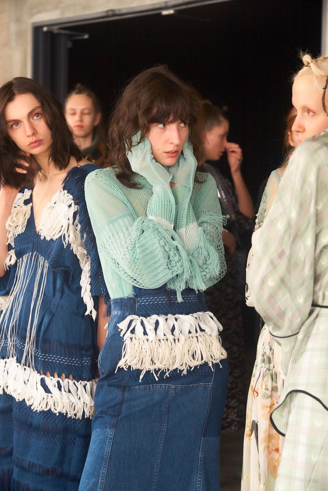 Maiko Kurogouchi excels in Japanese craftsmanship. Her multi-textured creations make use of a rich range of materials and skills, from embroidered flowers on leather boots, to complicated weaving techniques, and sewing threads into the models’ hair.