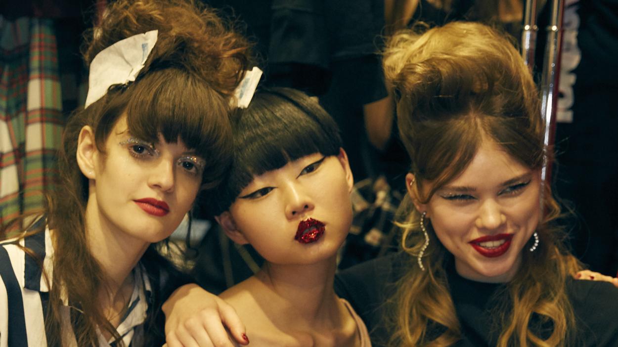 This is the first collection from Naoki Tomizuka, who was a longtime pattern-maker at Comme des Garçons — so you know it’s going to be beautiful. And it was. There were ruffles, hats tied on with ribbons, lace shoes and models reading books. Very Brontë.