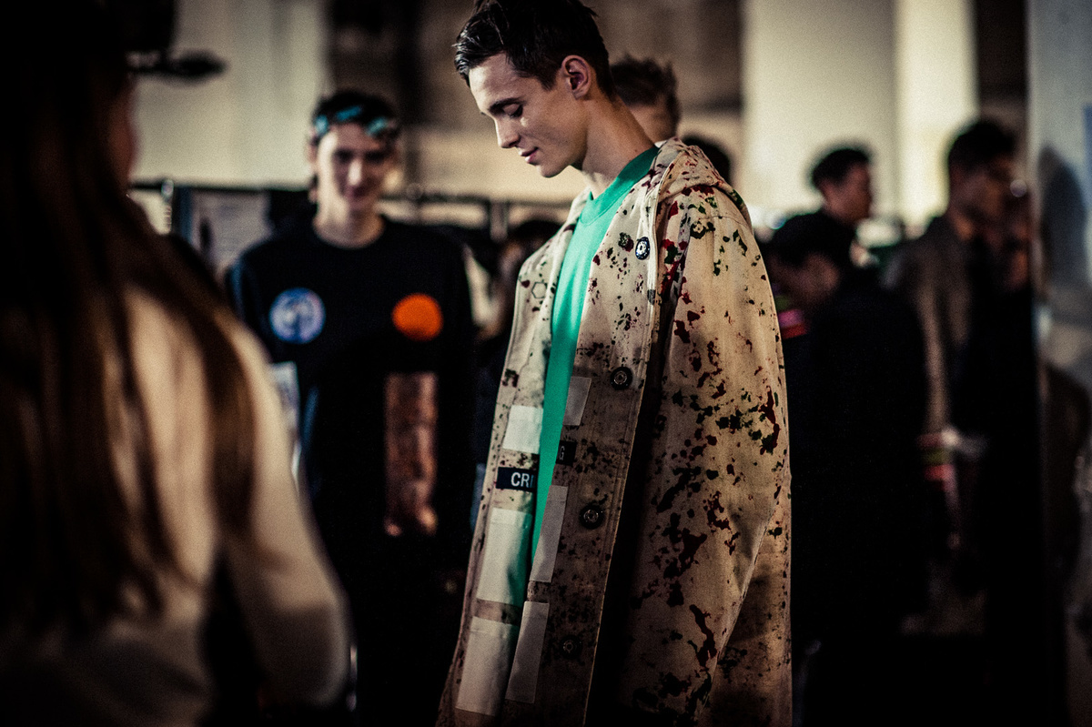Join us backstage at Raf Simons + Sterling Ruby's Autumn/Winter 14 presentation for Paris Men's Fashion Week.