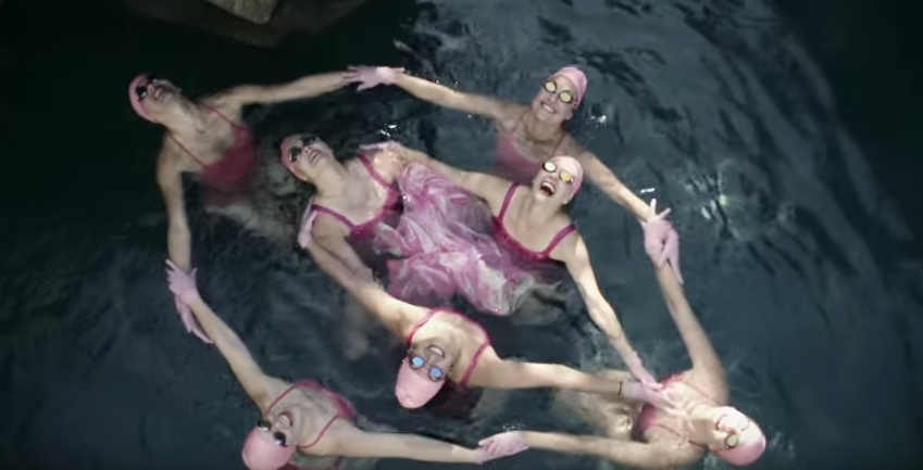 In her new clip for “Vaginoplasty,” the latest track off her album Rub, Peaches continues her lifelong celebration of bodies and sexuality. Being Peaches she communicates this through elaborate costumes, unicorn dancers, and synchronized swimming at an innuendo-heavy pool party. The artist stated that the NSFW, vagina-themed, Briana Gonzales-directed video was her take on the dreamy water ballets Esther Williams made famous in the 50s.