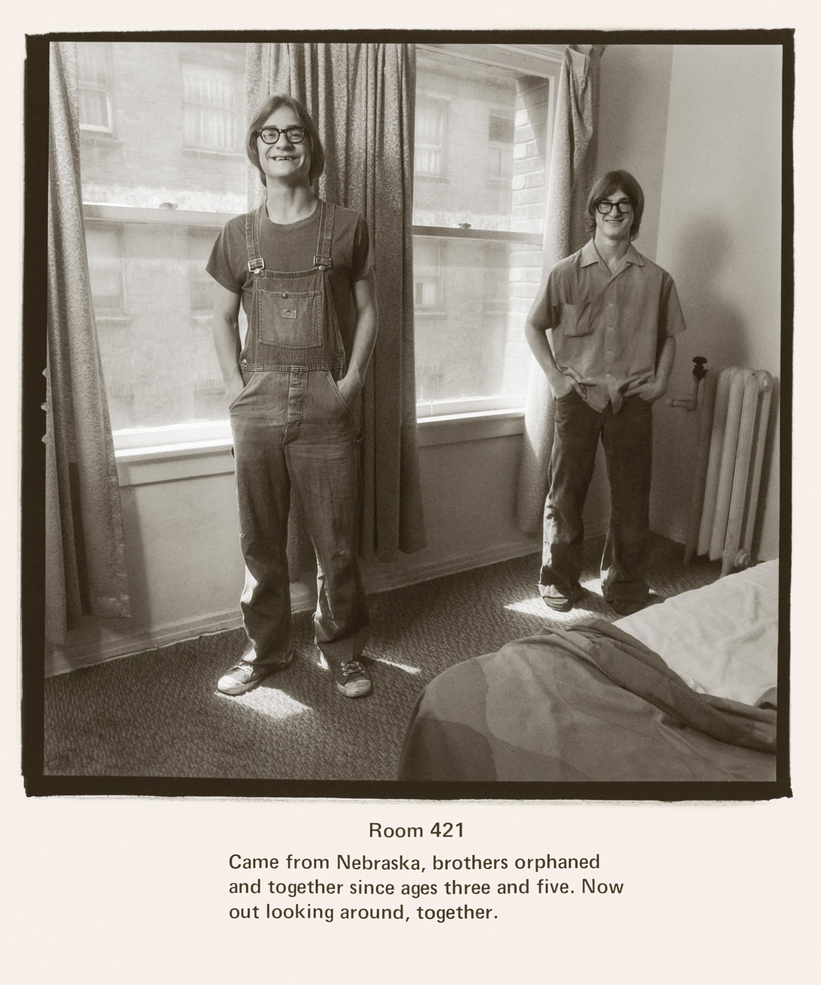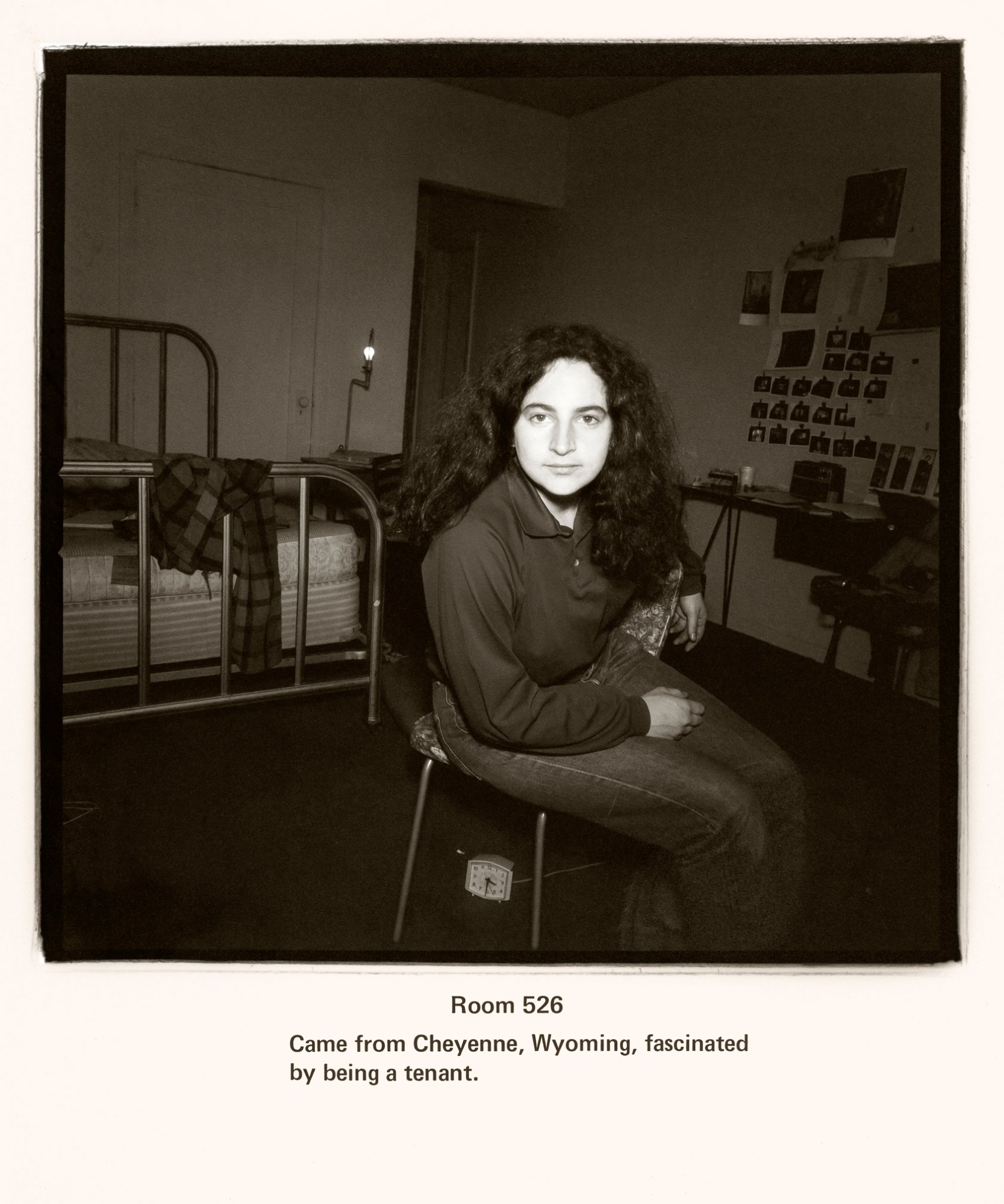 Seizing the moment, Penny decided to get a room for herself in order to embark on a series of environmental portraits. Over a period of three weeks, she lived in Room 526, and set to work photographing the hotel’s residents. Nearly half a century later, Penny just published the work as Guest Register (Crazy Woman Creek Press), offering an insider’s view of life at an SRO (single room occupancy), a once-common form of urban housing that is now all but obsolete.
