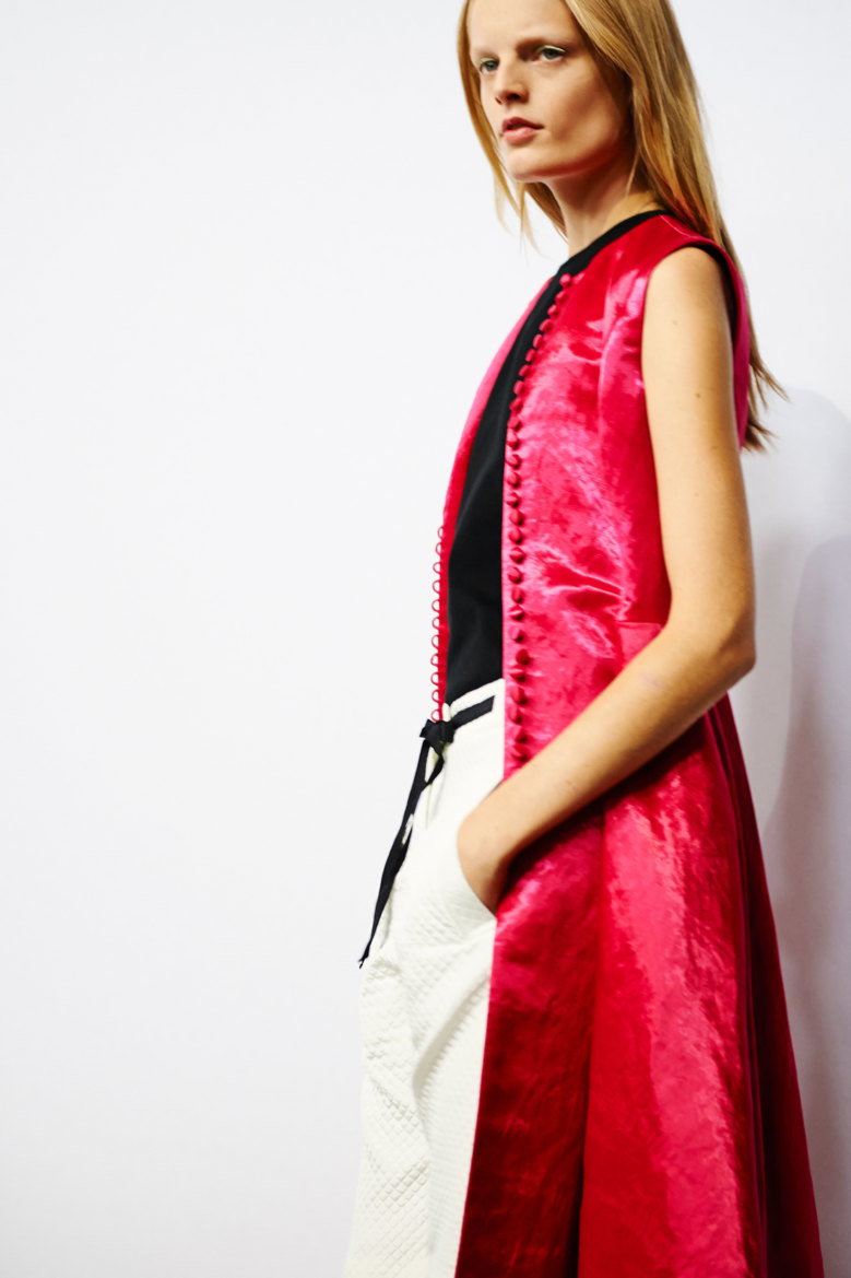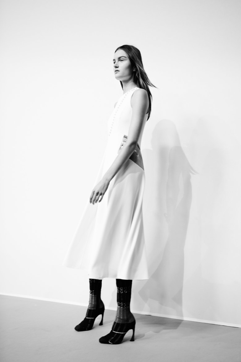 „Pomysł polega na podważeniu tego, co ludzie myślą o współczesnej modzie ?’ można było przeczytać w pokazowych broszurach. ?’ Dużo nowocześniejsza niż odświeżony styl poprzedniej dekady wydała się podróż w odległą przeszłość”. Simons podąża za ciosem kolekcji haute couture, którą pokazał latem, i dalej kroczy szlakiem kostiumowych inspiracji. Tradycyjne, starodawne krawiectwo przetłumaczył więc na zrozumiały dla współczesnych klientek, bardziej sportowy i łatwiejszy w noszeniu język. I było to wielkim zaskoczeniem nawet dla branży, w której od projektantów ciągle oczekuje się pomysłowości. Uwierzcie w to lub nie, ale raz na sto lat powstaje coś, przy czym warto zatrzymać się dłużej. Simons cofnął się więc do XVIII wieku i wprowadził w naszą erę Robe à la Française: jeden z najsłynniejszych przykładów strojów nadwornych w historii.