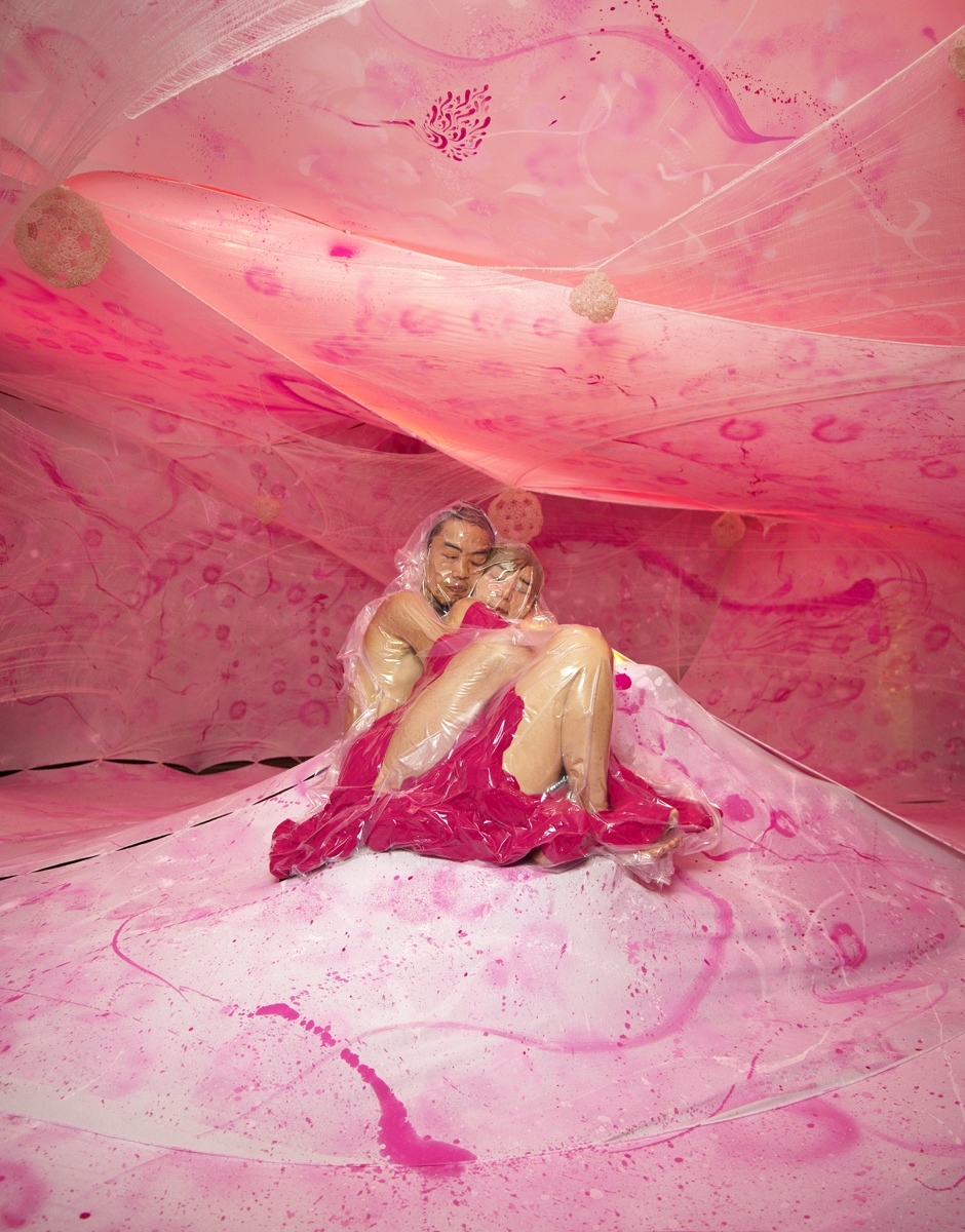 Photo shoots with Japanese photographer Haruhiko Kawaguchi—better known as Photographer Hal — start out strange: first, he asks couples to undress, and smothers them in lube. Then things get even weirder: he smushes the couples together, wraps them in a plastic bag, and uses a vacuum to suck out all the air. But Hal isn’t a photographer with a fetish; he’s better described as a hopeless romantic. “I think love is the most important thing on earth,” says Hal, whose Flesh Love series was about fusing couples into single beings. The plastic bags—or “vacuum-sealed packs of love,” as he calls them—were simple devices used to visualize connectedness. Hal photographed around 400 couples for the series, before completing the project and publishing a book on it in 2015. Now, however, Hal has revived the project as Flesh Love Returns, and taken it one step further: Instead of shooting couples naked and against monochromatic backgrounds, Hal is photographing them in places that are meaningful to their relationships (such as a restaurant, bathtub, love hotel or street littered with cherry blossoms). “Sometimes, at exhibitions, I would get questions about who the models were,” Hal explains. “I had a need to describe their personalities without text.” In doing so, the series has become more nuanced, and the photos have more depth. Each one offers hints at a love story, told in Hal’s unique visual language. “Someday, I hope to find my love,” Hal discusses in the following interview, “and together be in a vacuum-sealed bag too.”