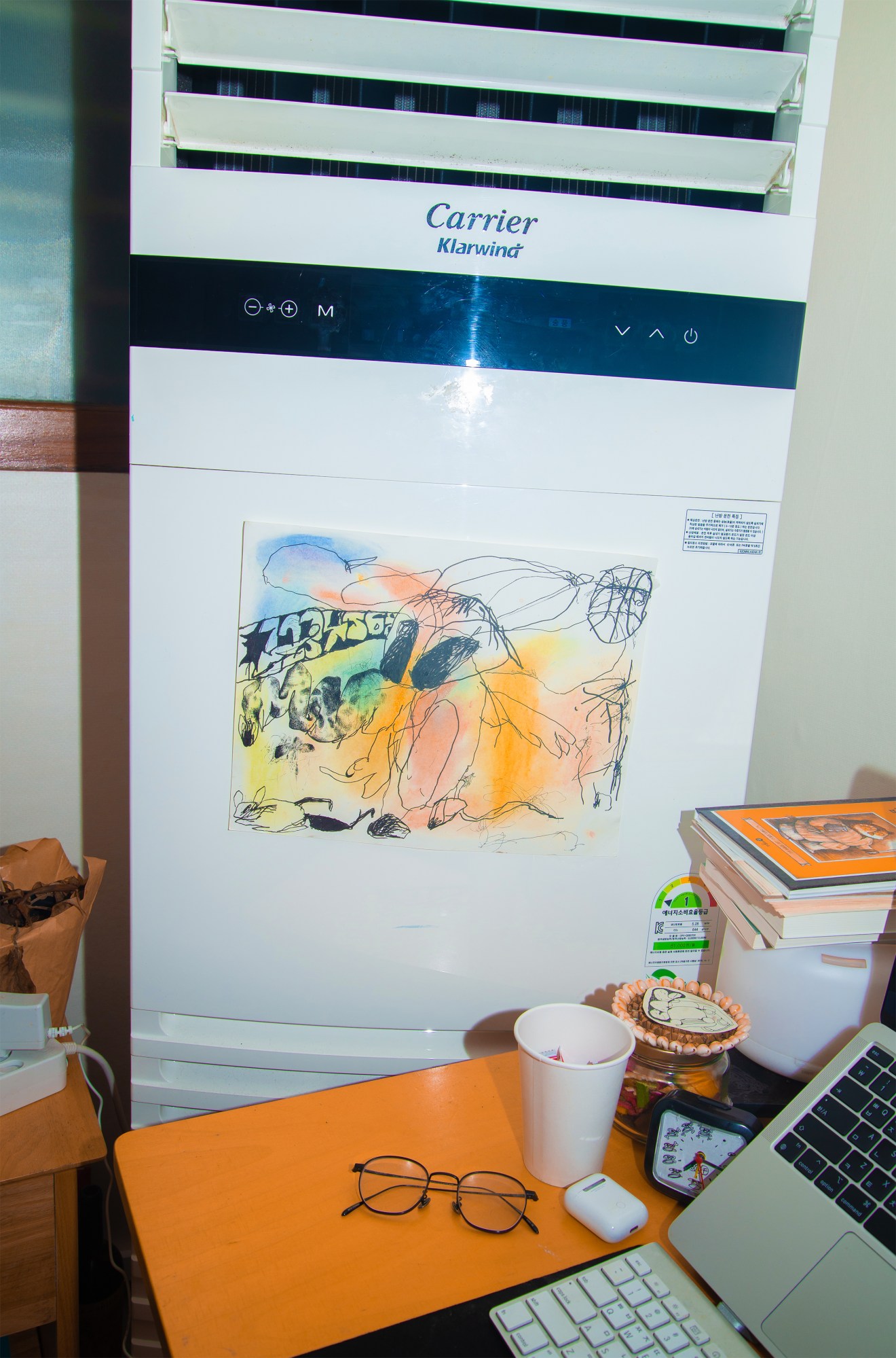 Surrounded by his musical instruments, souvenirs, drawings, and impromptu art, the Seoul native talks about how he got used to working from his bedroom in high school, creating a safe space for his friends, and what does he have to do to get by as an artist living in Seoul right now.