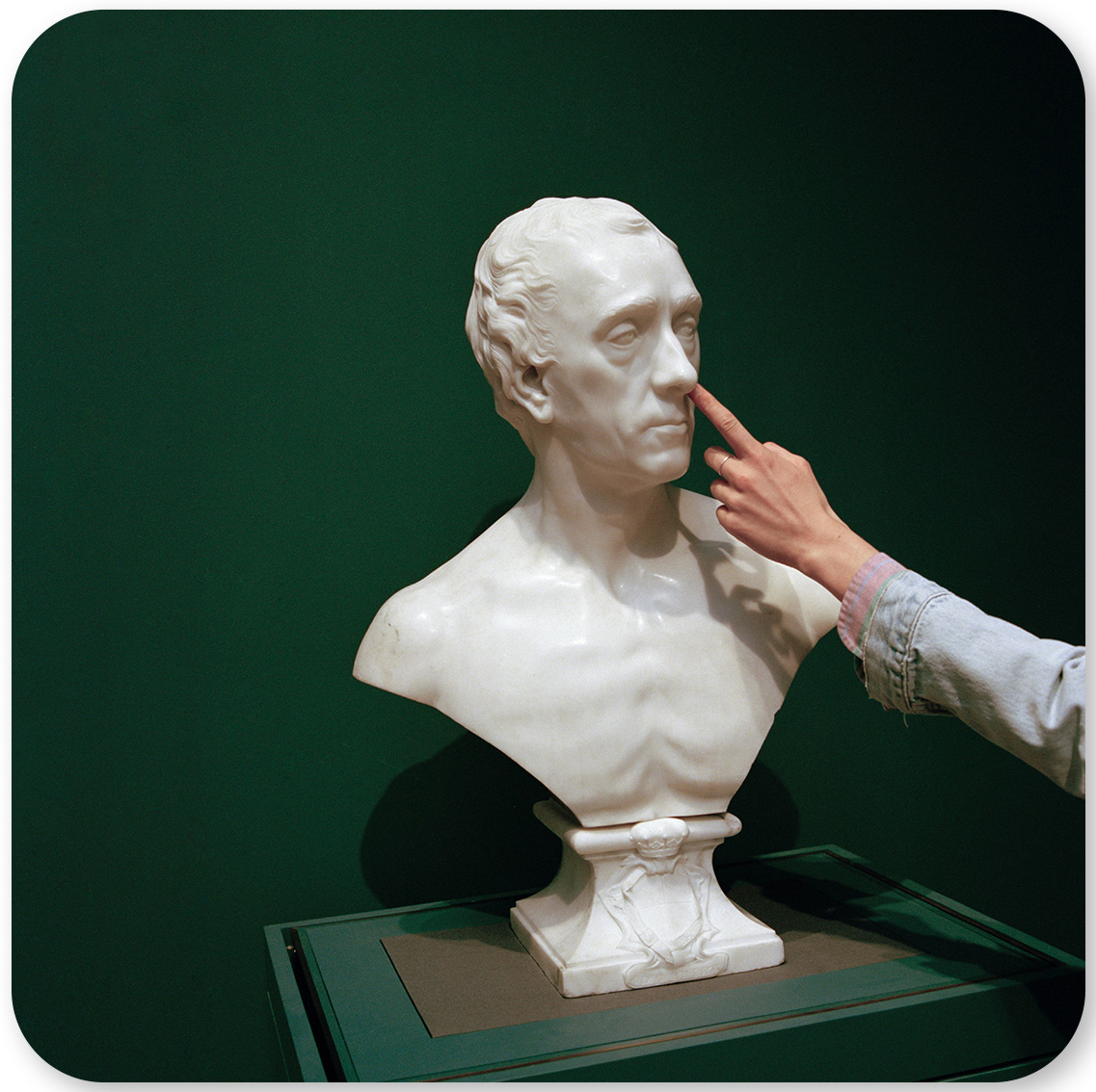 Polly Brown has such a unique approach, often putting herself in her imagery. Her final images have so much humor. It was a great study in perception as she did not actually touch the artwork, but to the eye it looks like she put her finger up the statue’s nose! We were drawn to Jacob’s work with Simone Rocha and his beautiful books capturing a real grandness, whether it’s a street corner or inside a royal building. His final shot is so serene and beautiful it really captured the beauty of the NPG before opening hours. Dham has a huge knowledge of the art world, particularly the more traditional masters, and he always inserts a little humor into his work. His study of a nose and his beautiful collage really married his work, and incredible eye for casting, with this project. Larissa has such a feminine sensibility to her work and, in particular, she can capture something incredibly mundane and spring it to life with an elegance and a real sensuality. Her image is perfect for the hand mirror. I love how surreal and almost obscene it looks while maintaining a real beauty to it.