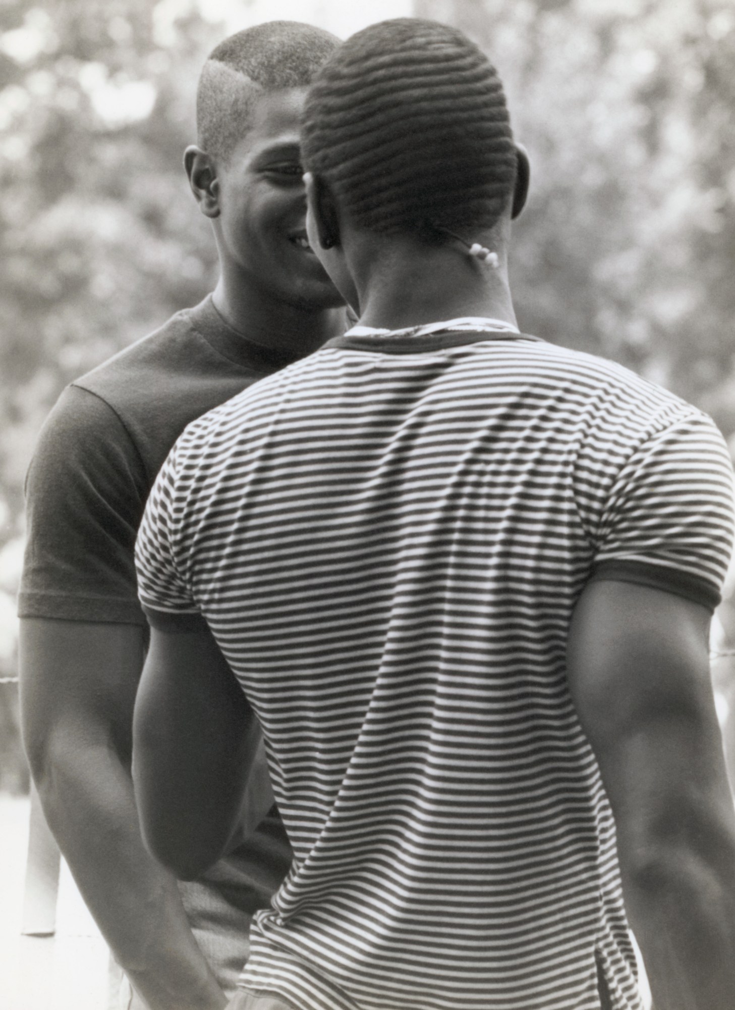 Chicago’s lakefront, city parks, and other outdoor spaces were popular pickup spots, especially in the summer, when buff cyclists donned their skimpiest shorts. Many of Patric’s subjects also frequented the Rialto Tap, a South Loop bar whose clientele consisted primarily of Black men. Though several never defined themselves as gay outright, the establishment served as a gathering place to explore their sexualities and seek out acceptance, something mainstream queer bars routinely denied them. Patric befriended a few of the regulars, and each evening, the Rialto became a backdrop for some of his most iconic photos.