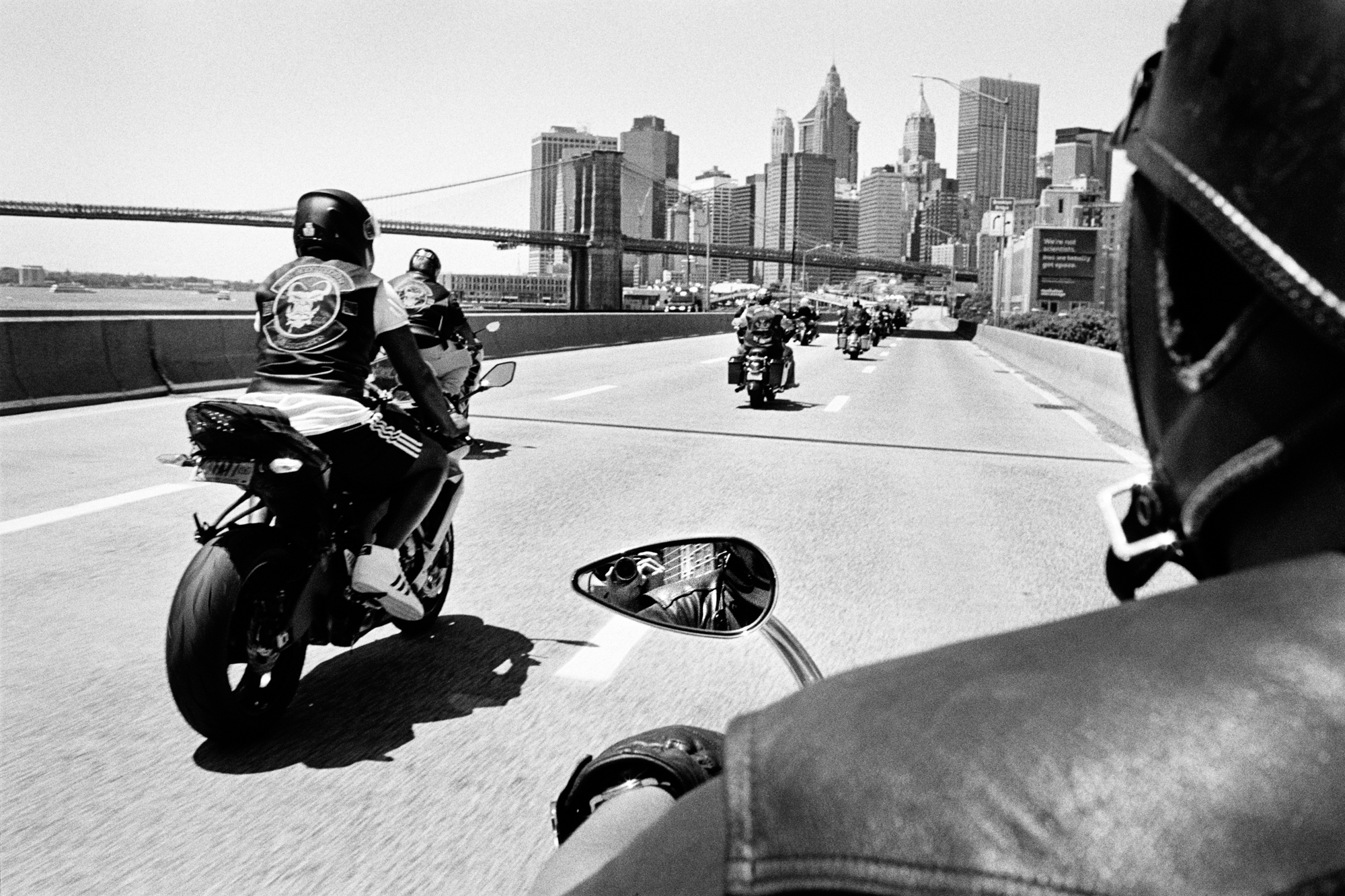 “Afterwards, they told me they were going to a barbecue and invited me to come along,” Cate says. “I rode with them to a park somewhere in Brooklyn and there were hundreds of bikers from dozens of clubs already there.” After being introduced to the set, Cate spent the next year getting to know the Black Falcons, one of New York’s oldest Black motorcycle clubs. Established in 1962, the Black Falcons are committed to preserving their history and recognised in Cate her potential to contribute to their legacy through photography.