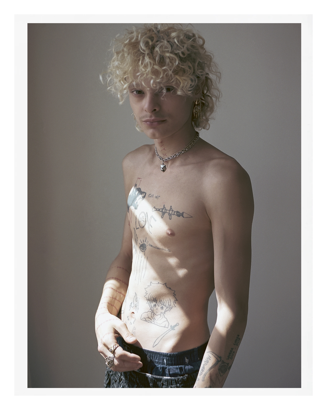 During various trips to the city, sometimes teaming up with casting director Esther Boiteux or organically meeting local kids in places like République square — the heart of many protests in Paris — Dan began to realise many of his subjects knew each other or were connected in some way. “I photographed a boy who told me afterwards that I had shot his sister a few weeks before,” he says. “And there were people that I would never have thought would know each other. You’ve got one kid that’s a skateboarder that knows this other kid who’s a bit more into heavy metal. So that’s interesting as well. I do think we are living in a time where connections are much stronger, possibly because of COVID – a time where these kids, when they were quite young, will have realised just how important connections are. I had this genuine sense that people wanted to be seen, and I just wanted to allow these kids the space to be themselves.”