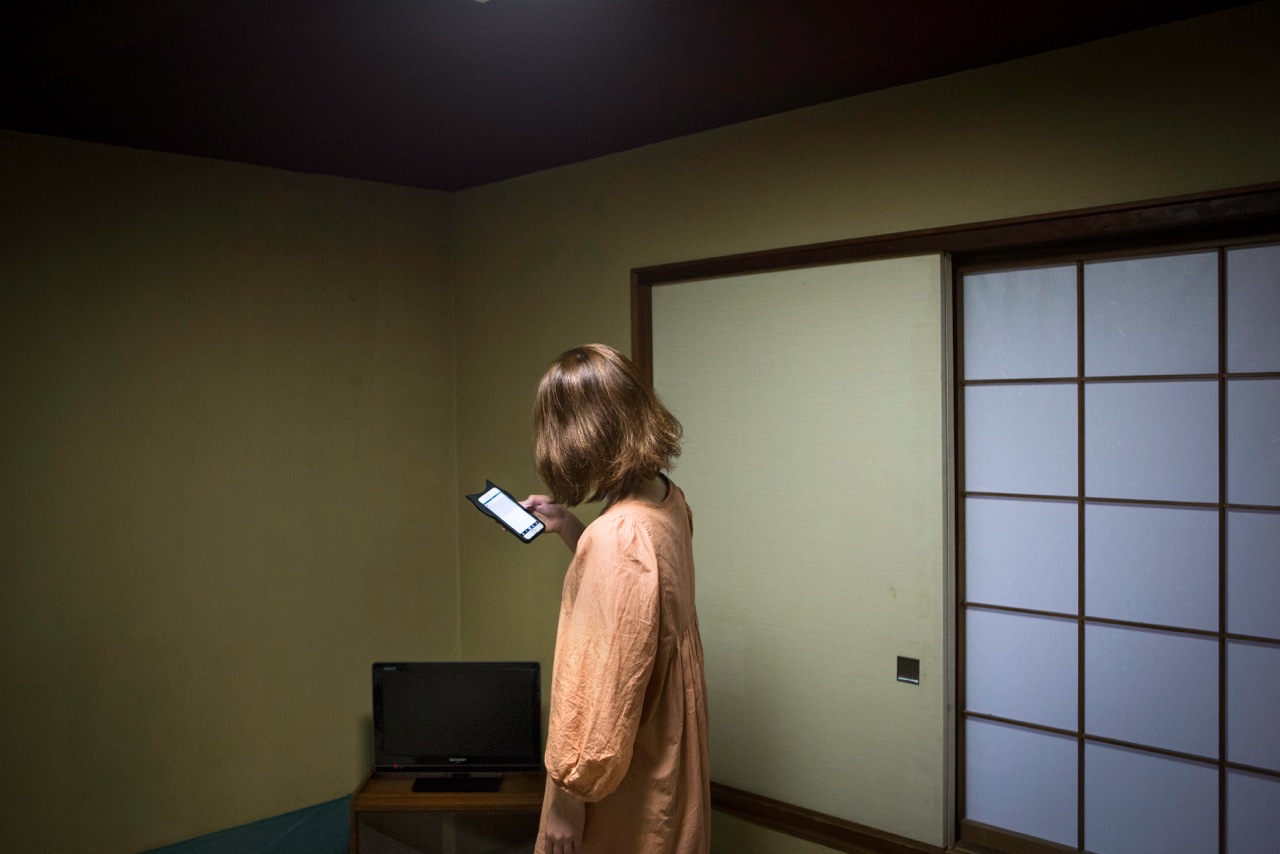 I looked for people who were willing to be photographed. First, I talked to people entering the hotels, but that was really hard. It was not a good moment to approach people. So I started to write advertisements online with the help of a Japanese friend, and people were much more open on the internet. Of course, around half of them canceled. But some of them were very curious, and I always offered the room and the pictures, so it was kind of a deal for them, too.
