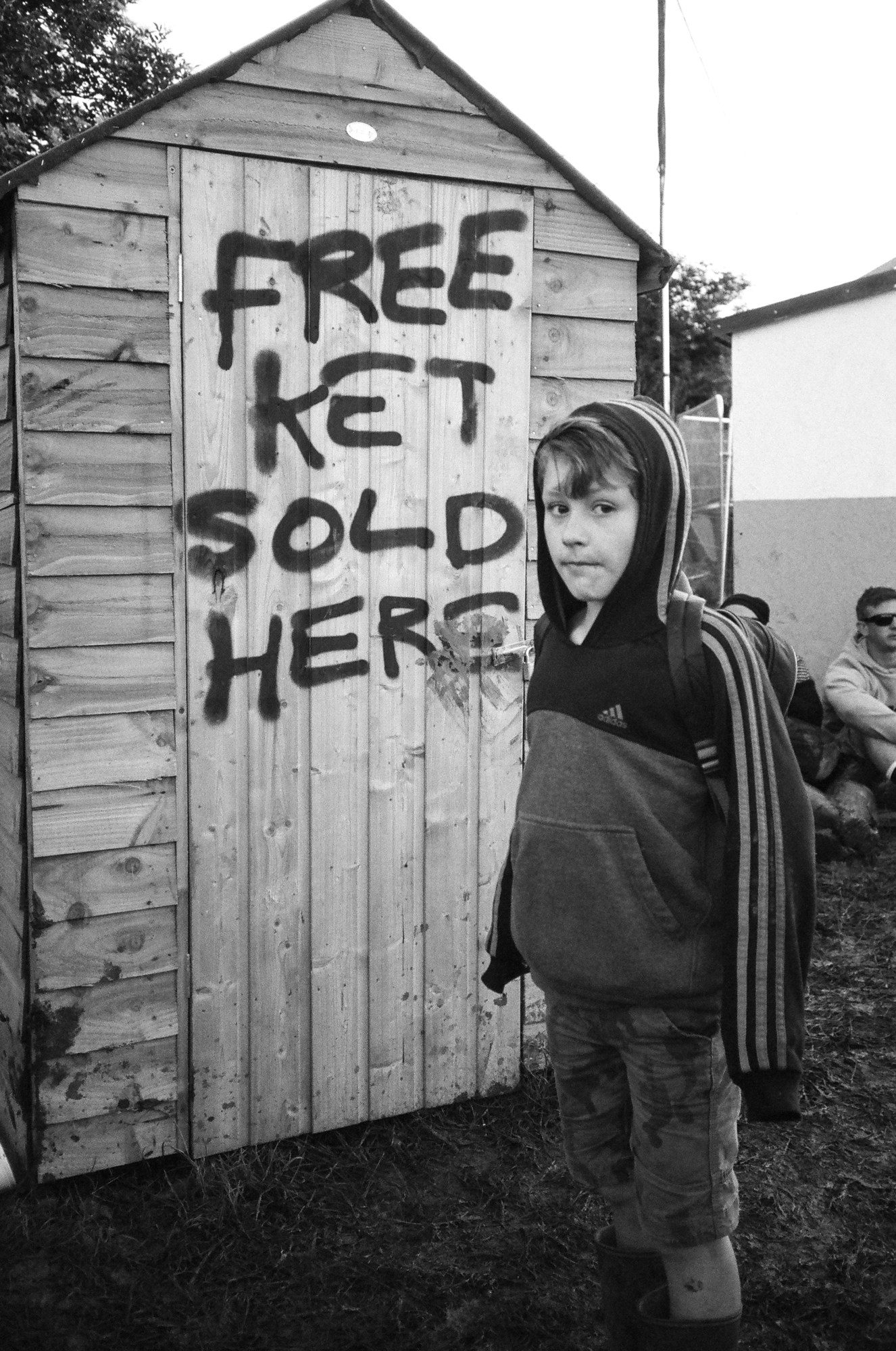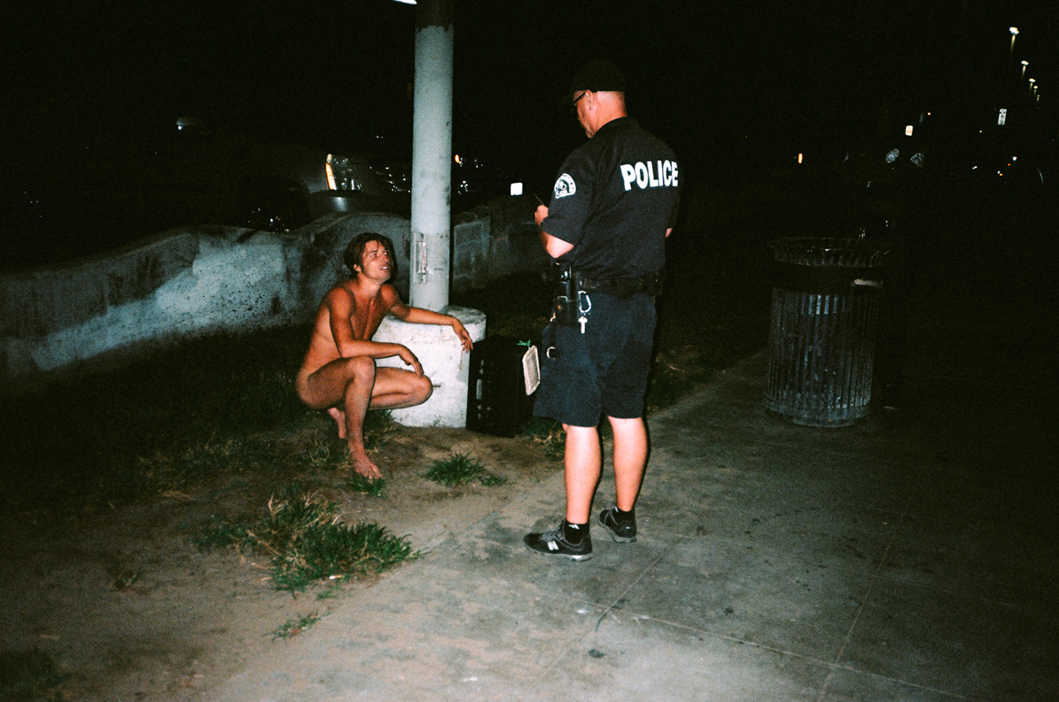 Throughout, there’s “a juxtaposition of innocence and innocence lost,” Marcus says. A baby crying, wearing blue earmuffs that compliment the colour of the nos balloon a woman inhales next door, or a young boy of no more than 10-years-old standing beside a hut graffitied with “free ket sold here.” An image of a sign that reads “fence jumping and trespassing prohibited: violators subject to prosecution and removal from the park,” sits beside four frames of party-goers hopping over the gate, or handcuffed and being escorted by police.