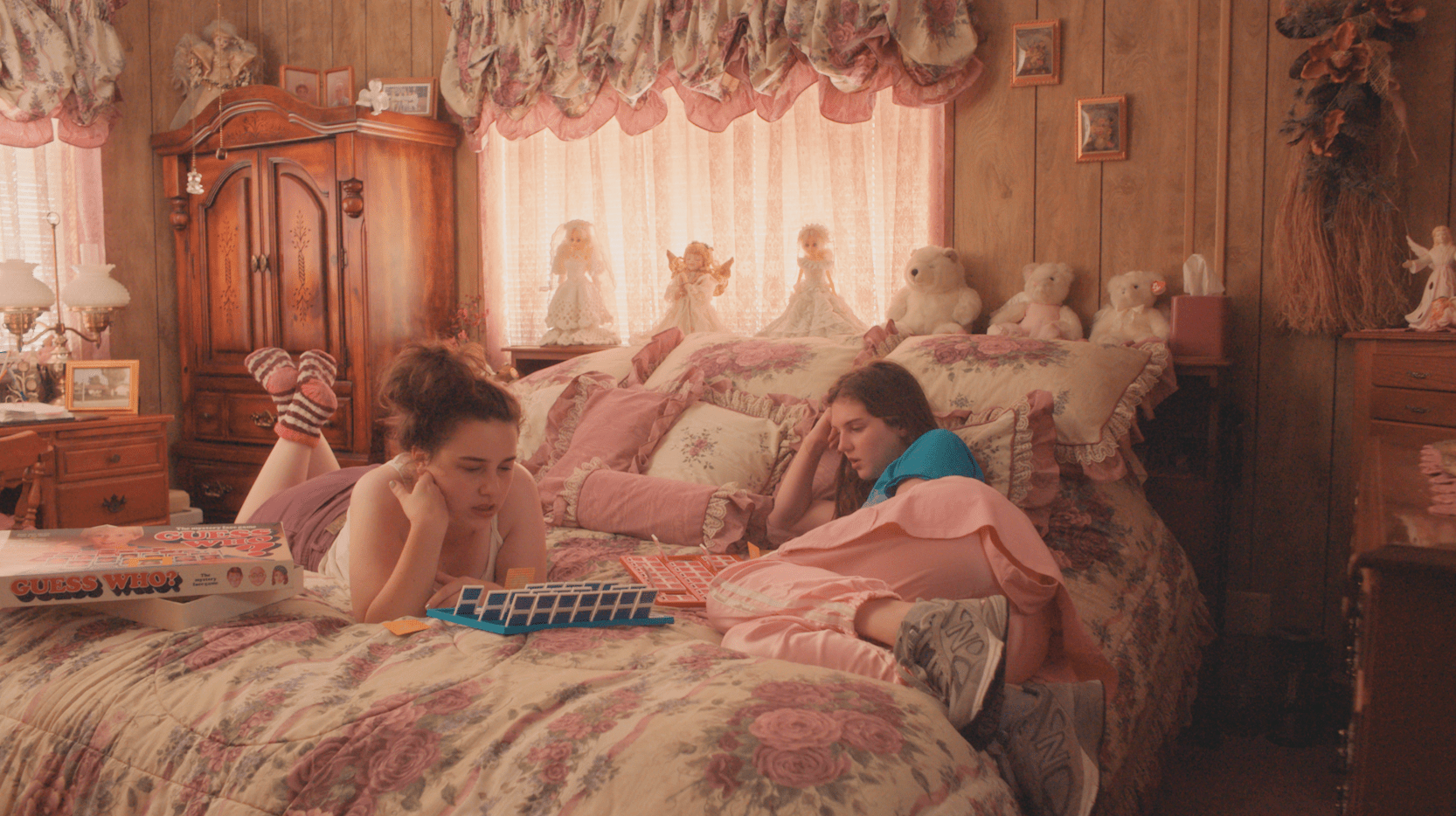 “Everyone thinks that they’re teenagers in it,” director Mary Neely says of the two IRL best friends who star in her latest short film, Pink Trailer. The fact that they’re in their 20s makes the film’s premise even more darkly absurd. Lucy (Macey Isaacs) and Julie (Jenny Leiferman) are spending their summer avoiding responsibilities while holed up in Lucy’s grandma’s house, a flouncy pink 90s time capsule filled with creepy dolls, plastic flower arrangements, Pop-Tarts, and a game of Guess Who? Boredom turns to fear when Lucy realizes she’s out of antidepressants, but can’t go to CVS thanks to a creepy neighbor, Benny, who lurks around the property hoping to score a hangout session. The only real indication of the girls’ age is a phone call from Lucy’s grandma, who tells her granddaughter she’ll soon have to get a real job, in between ranting about devil cards. (“Hi hon! Just got done with my tarot cards workshop. I’ve had it with that moley man I told you about — you know, the son of a bitch who said I’d never develop my sixth sense?”) Watching the girls enjoy tea and pink-frosted Pop-Tarts while playing X-rated confession games feels delightfully incongruous. But it’s also a perfect metaphor for being a complicated 20-something who’s still figuring her shit out.