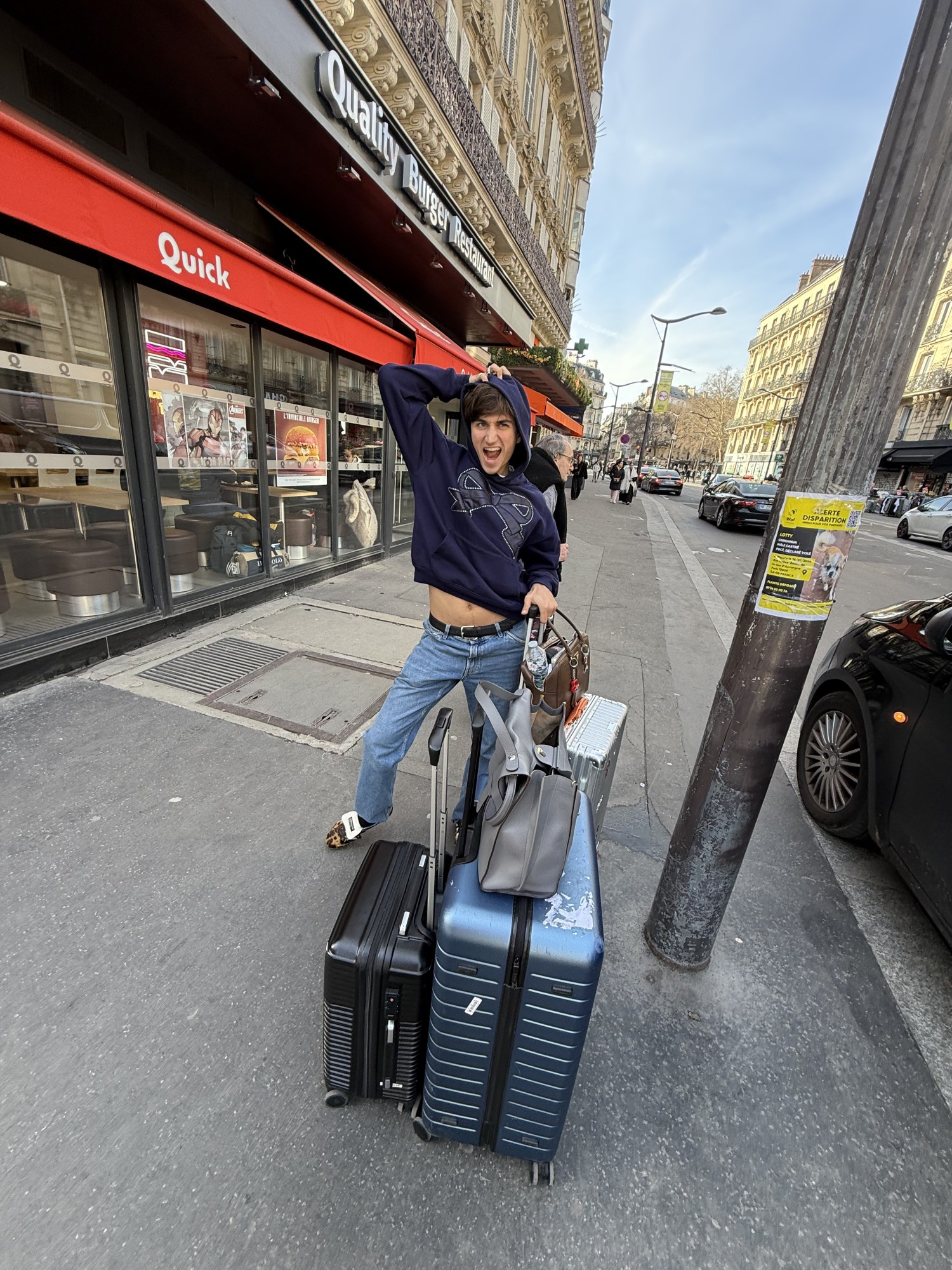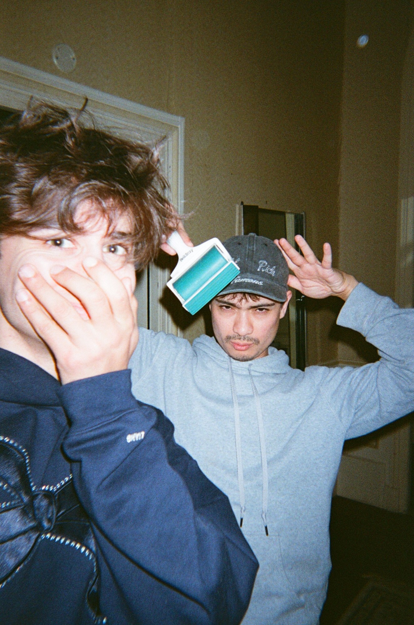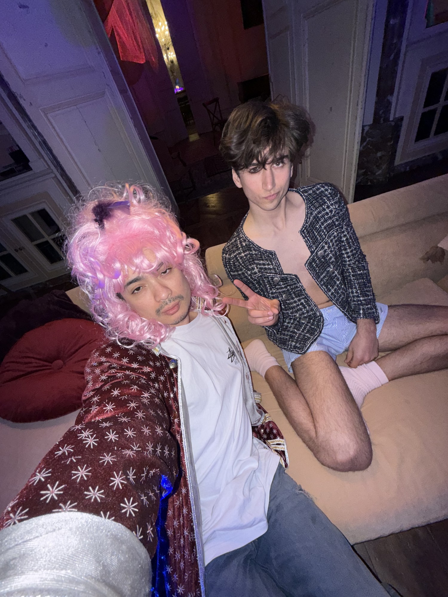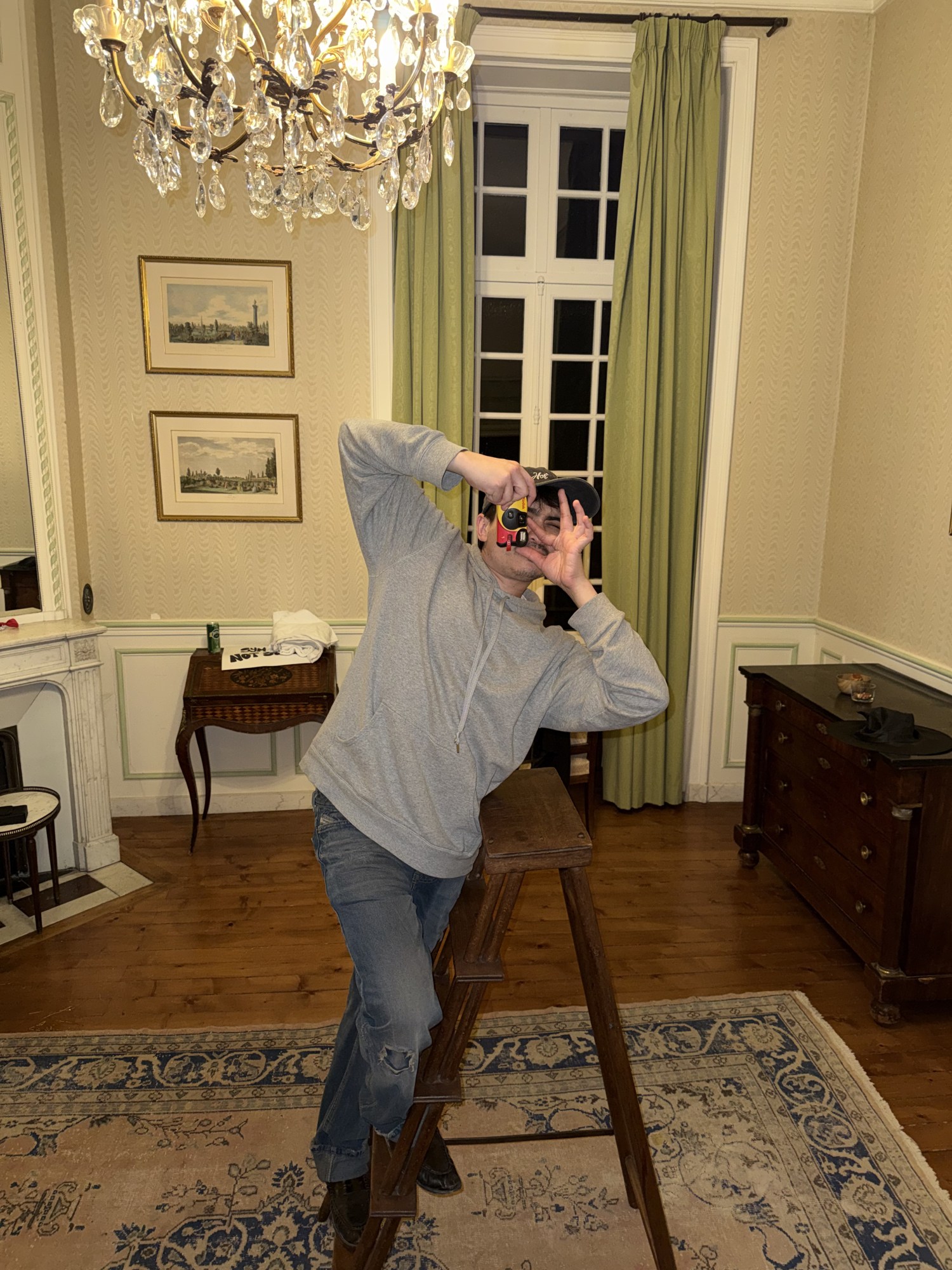 Totally. You have this insane French chateau, but it’s filled with artists living there like it’s a dorm. Clothes hanging everywhere, people lounging around. And then we arrive with two suitcases and a dream… and disposable cameras. Buying those was one of the best decisions of the trip. One of those photos literally became the single cover, which you shot.