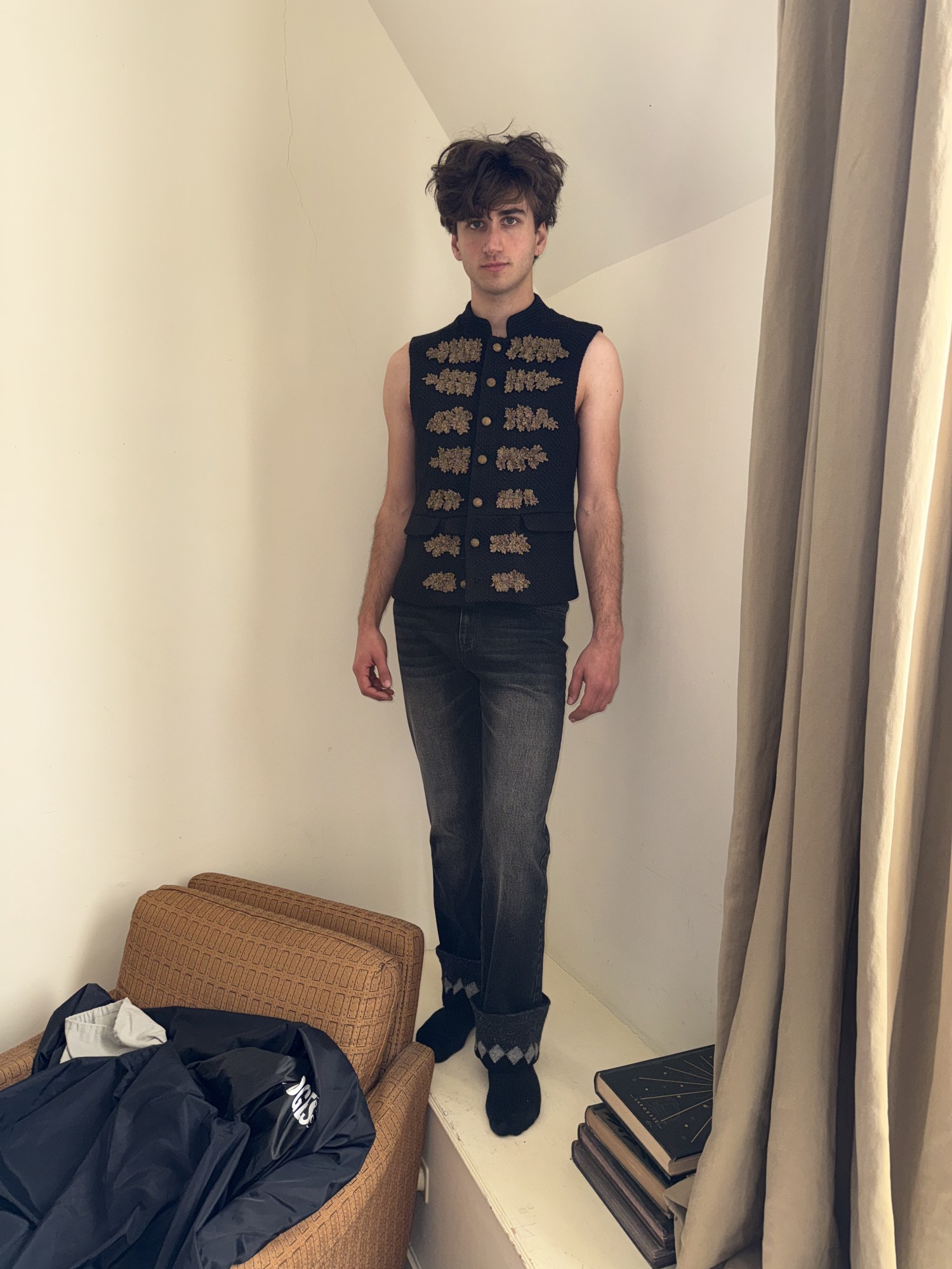 Honestly incredible. I loved that we worked with young British designers. It mirrored how I feel about the music. I’m at the beginning of something. When I first put on the Oscar Ouyang look with the sunglasses I genuinely felt different, like stepping into a more confident version of myself. Almost like a preview of Pop Star Bash, a glimpse of the future version. I also loved the Geordie Campbell wallpaper moment. But obviously the new-season Prada and vintage Chanel were fab too—very The Little Prince goes pop star.