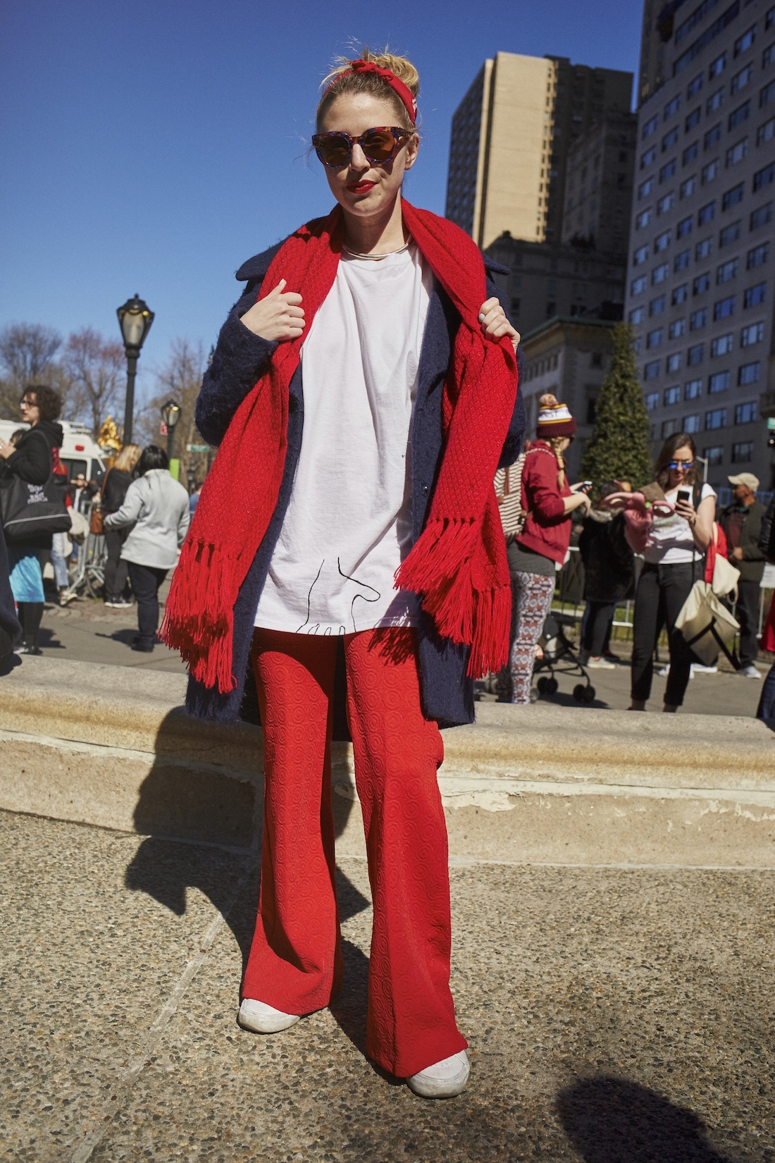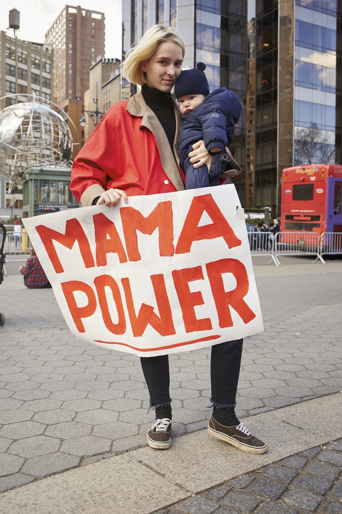 But just because women didn’t show up for work yesterday didn’t mean they failed to show up anywhere. A few hours after the sun rose over the United States’s colossal symbol of freedom and enlightenment, thousands of people trekked to Central Park to march in solidarity with women directly affected by the Trump administration’s misogynistic and discriminatory policies. (It was not the first time the weather gods have endorsed a mass anti-Trump assembly.) Many of the marchers held signs of support for the women unable to strike or forgo a day’s wages. Most of them wore red as a symbol of revolutionary love and sacrifice. i-D caught up with a few of the them to find out more about why they were striking, what they would say to their sisters around the world, and who their preferred president would be.