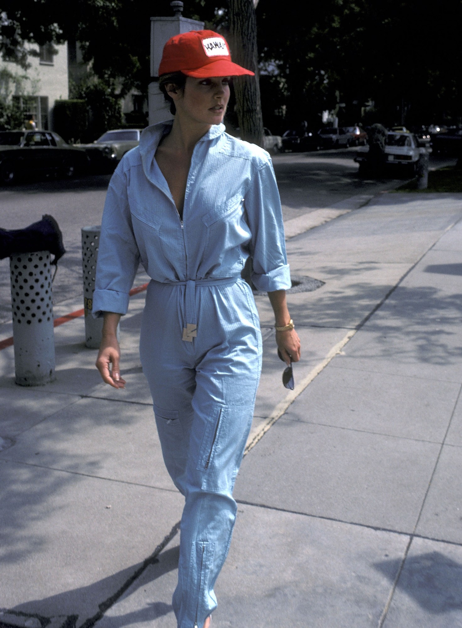 Priscilla closed the doors on Bis & Beau in 1976, and by the 80s was pursuing an acting career. Her first acting role arrived as a single-episode stint on action series The Fall Guy in 1982. The following year, she got her big break, being cast in iconic, long-running American soap drama Dallas, before starring in the wildly successful Naked Gun movie trilogy. Before garnering these cinematic roles, however, Priscilla was appointed co-host of Those Amazing Animals, an ABC reality TV series that featured strange and unusual animals from around the globe, in 1980. Here, on set of Those Amazing Animals, she wears a very era-appropriate pale blue jumpsuit paired with the decade’s ubiquitous flat-brimmed cap. This extremely 80s look polishes off Priscilla’s style evolution, from the 60s to the decade of excess.