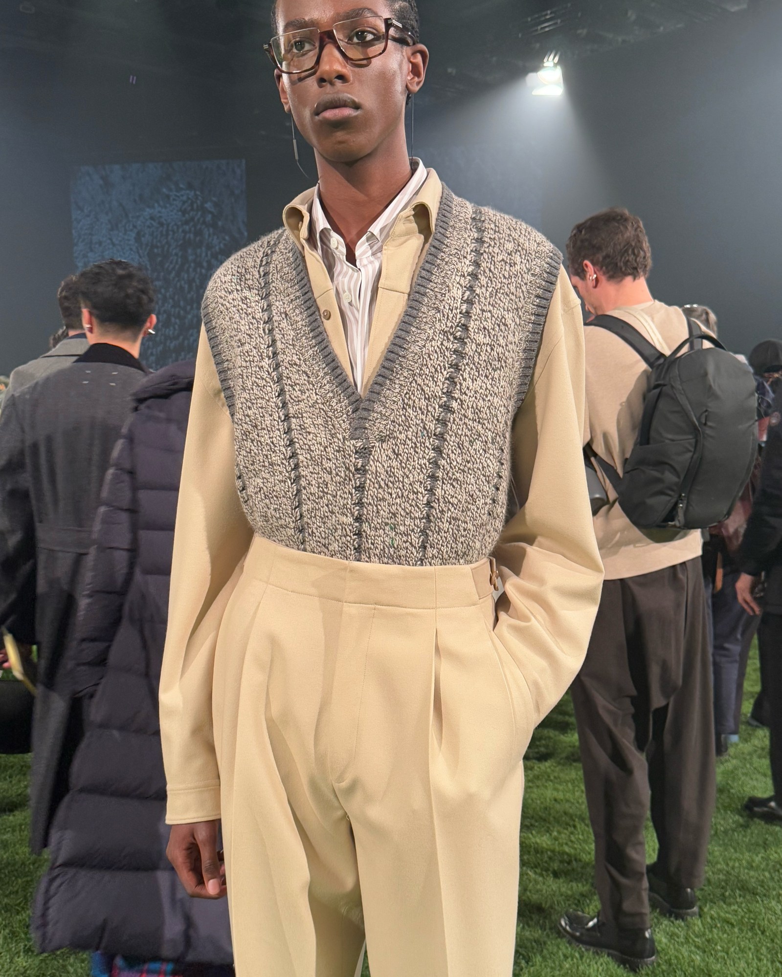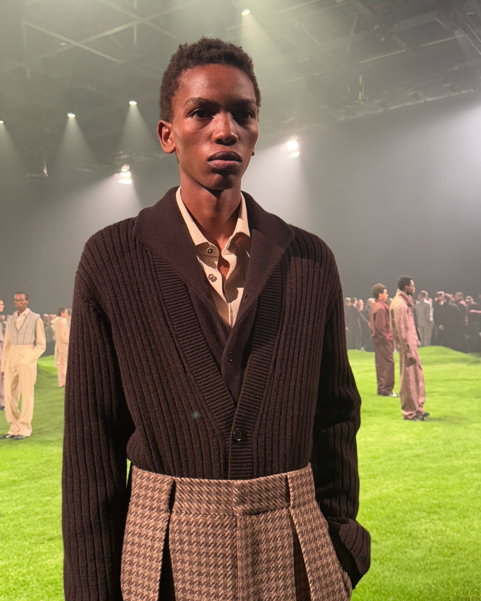 It’s a damp, dreary second day of Milan Men’s Fashion Week. Most groggy-eyed industry small-talk laments how the holidays went by “too quick” and the pain of removing an out-of-office bounceback from one’s email. If we’re heading into a new fashion year, it certainly doesn’t feel like it. “Quiet Luxury,” a pendulum swing from high-fashion’s streetwear era that gained momentum sometime around Succession’s final season, continued through Industry’s revelry and was bolstered via entry points like J Crew and Ralph Lauren becoming acceptable again, still looms in the air. Few sections of the fashion industry have benefitted more from its rise than Italian menswear—Bruno Cucinelli, Armani, Zegna, and Loro Piana have become buzzy brands among Millennial and Gen Z consumers. For FW25, the lingering safety of quiet luxury from both a styling and economic standpoint continued in Milan from showrooms to the runways.