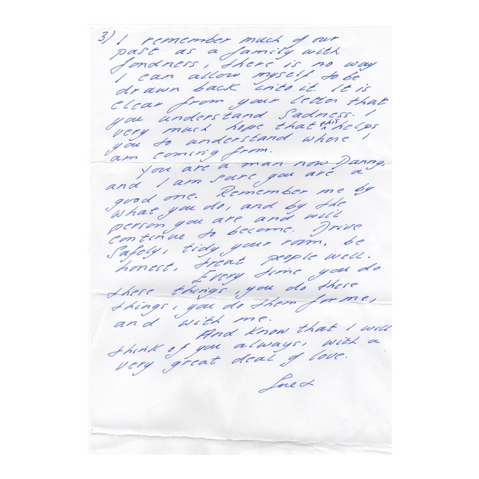 “After trying to contact my stepmother for 6 months, after finding out that her and my father had got a divorce (and my dad moved to spain), i tried to contact her endless times. This included 5 letters. One luckily reached her, and what follows is the actual story of the letters back and forth from her. This was the last time we have spoken to this date. The letters you read, are the exact letters that she wrote to me. Even though this is personal to me, i want people to know, this is a true story and i miss her everyday. Thank you for inspiring me Susan.” Danny Seth.