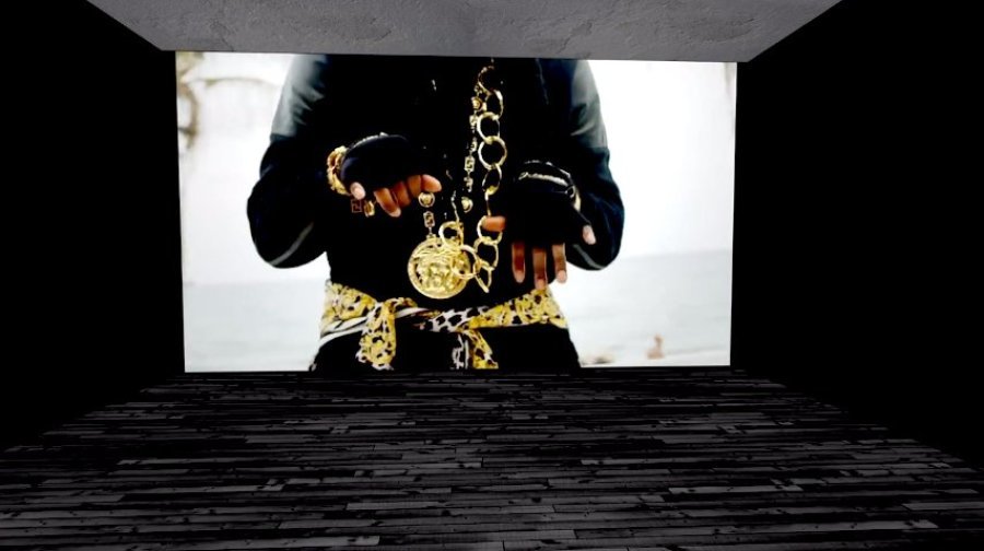 I look at the installation as a way to invite artists that came out of the survey to perform within the content of the video. The rule of the piece is that there has to be a performance either on the opening night or somehow during the show where the gallery or space will bring in an artist that came out of the survey or an artist of my choosing. This is the first of that series of performances and I chose Mykki because in a lot of ways, the piece, through the laborious process of making it, reveals things about Hip Hop culture: the misogyny, how it had become this enterprise that people started to really invest in as one of the biggest exports of the United States. It reveals sonic trends within the music because it’s informed by surveys between 2005 and 2012, so there’s a lot of different trends that happened visually and socially. It’s like a portrait of this culture with all its splendour but also with all its flaws.