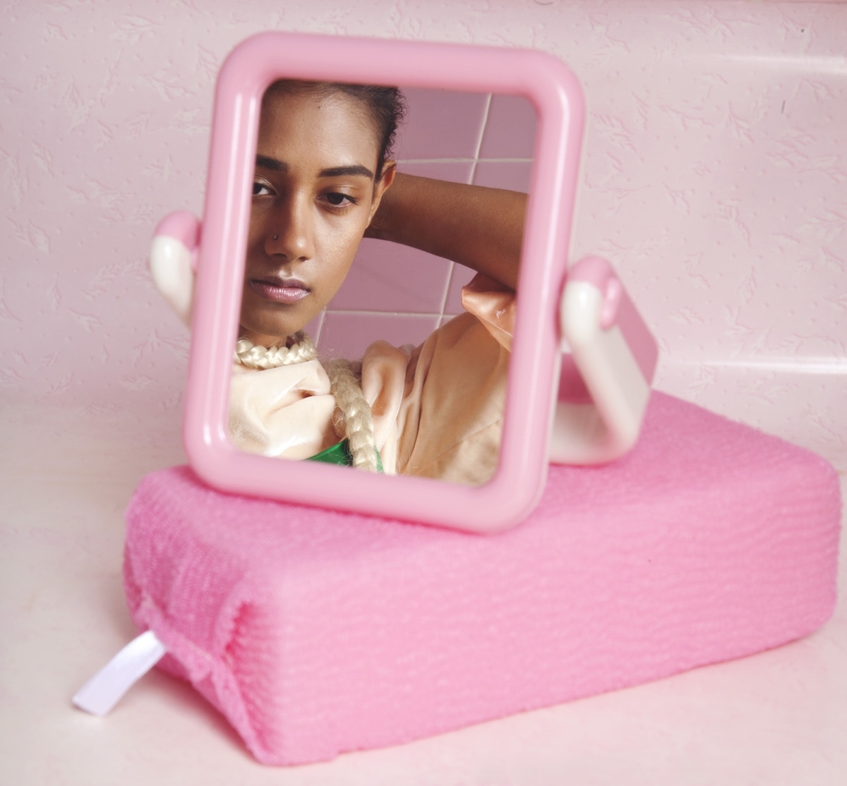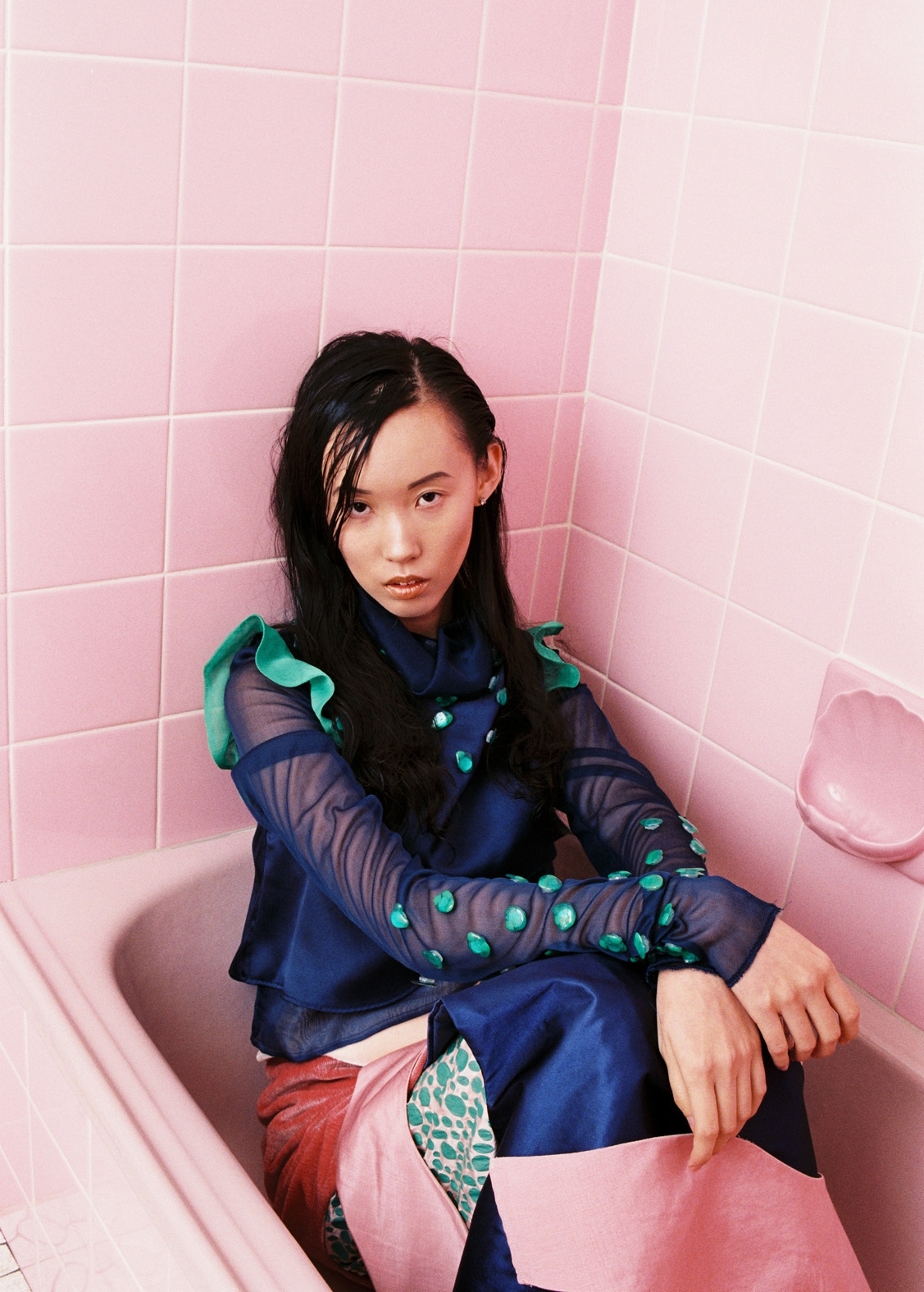 Everyone has their qualms about a not-so-hygienic bathroom and I wanted to apply a sense of childlike naivety to the scene, to play with the unsettling scenes of taboo we find-like hair in the sink, slimy soap and flaky skin. I wanted to re-invent them into being beautiful and decorative elements.