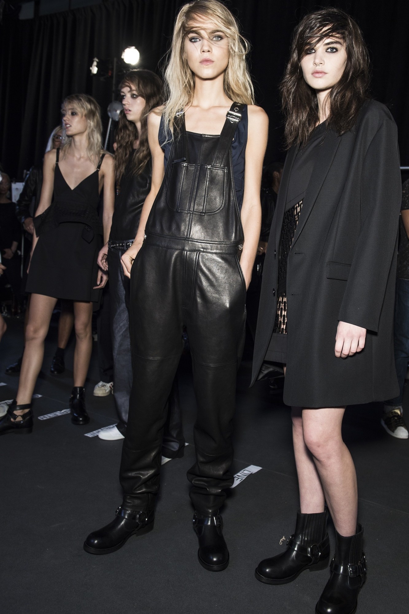Now in his sixth season at Diesel Black Gold, the Norwegian designer is well versed in the Italian brand’s biker culture codes. Those lighter cotton pieces provided the perfect compliment to “a sort of core: leather jackets, leather dresses, denim — all those iconic staples for us,” Melbostad said. Leather overalls and trousers were a bit baggier this season, and Melbostad switched up the jacket construction, opting for slightly boxier fits. “It’s about injecting feminine touches within the strength of a men’s silhouette,” he noted.