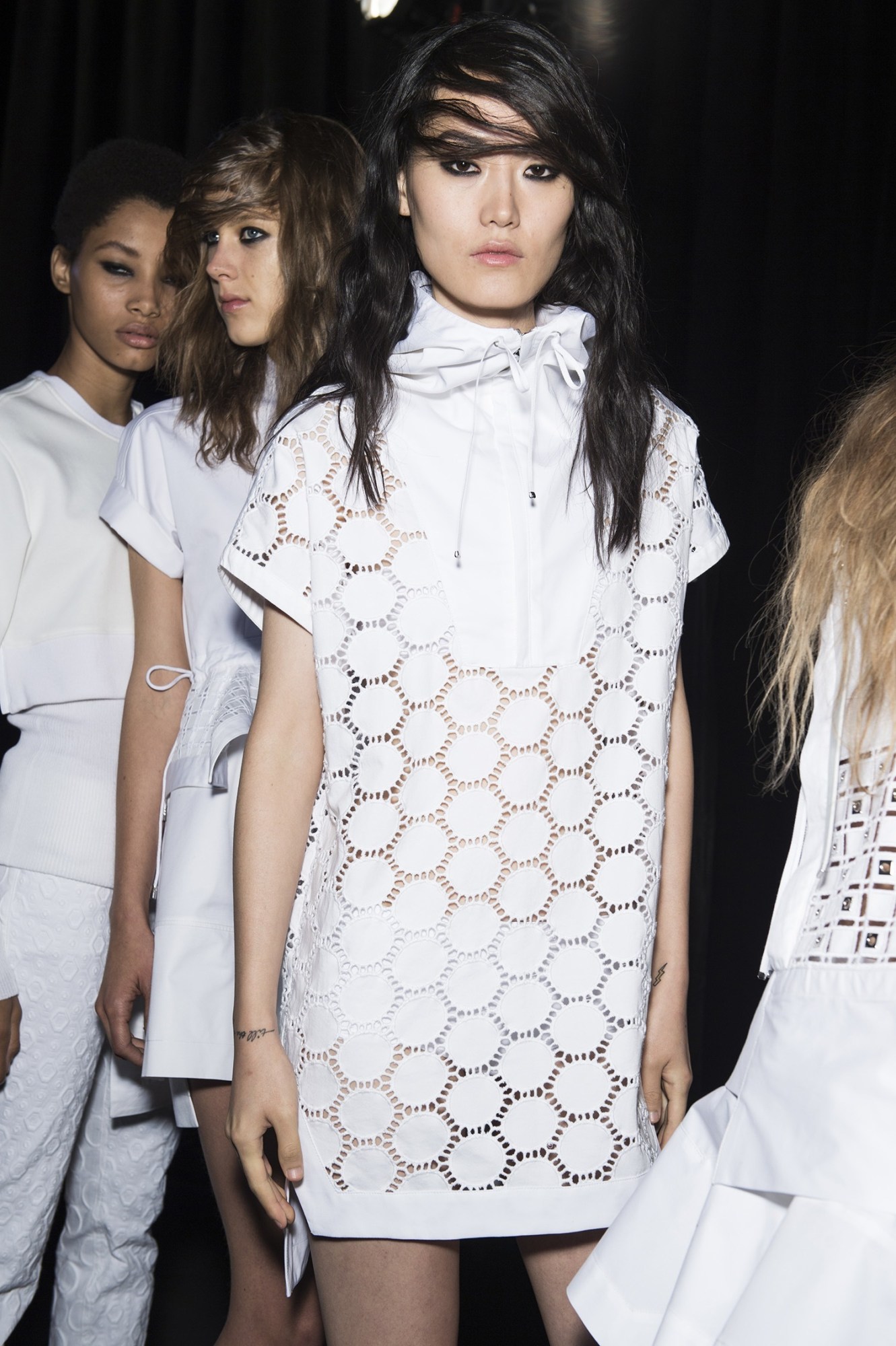 “This collection started with the idea of a girl taking a men’s shirt and wearing it as a dress, but it got really abstract from there,” Melbostad explained backstage. “I was in the mood for a more stark, cottony spirit, so we played a lot with that.” There weren’t many buttons or collars to be found among his offerings; Melbostad’s play took shape in geometric details. Small cotton squares formed an eyelet pattern that featured on crisp tanks, dresses and skirts.