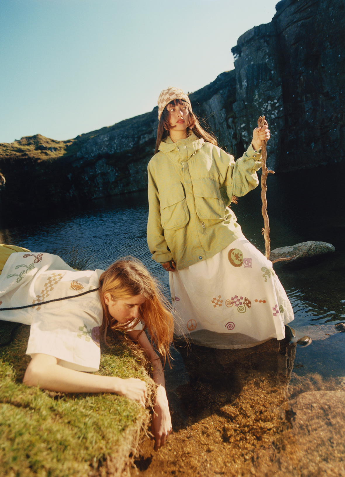 What makes sustainability an especially important conversation in the communities you work with? We upcycle a lot of folkloric and vintage textiles, some from England but most from Bulgaria. They’re so special and carry so much history but are usually thrown away. What are the most overlooked aspects in conversations around sustainability in fashion? The people involved in the production of clothes are talked about very little. We have always wanted to create a reliable network of craftsmen and makers, which we treat as family. We’ve found an amazing community in Bulgaria, a production network of women across the country led by our atelier head who outsources to women in their homes and to the small ateliers we use for pleating, casting and leatherwork. What steps do you think need to be taken towards creating a more sustainable fashion industry? Being sustainable is not always convenient. It requires investment of time and money and creates a lot of obstacles in the production process. But contributing less to the incredible amount of waste our industry produces makes it so worth it. Large brands need to commit to making use of their waste, and working more with deadstock and responsibly sourced textiles, as they are ultimately the greatest contributors to the issue. The change needs to come from everywhere, though — from brands and retailers, but also from customers, by buying responsibly and not giving power to fast fashion.