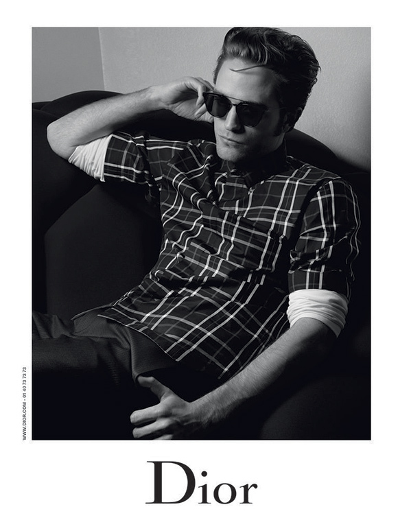 Another black and white campaign image shows an equally moody yet slightly more relaxed R Patz sit slumped upon a chair, shades on and staring into the abyss, probably thinking about FKA twigs. Team Edward fo’ lyfe!