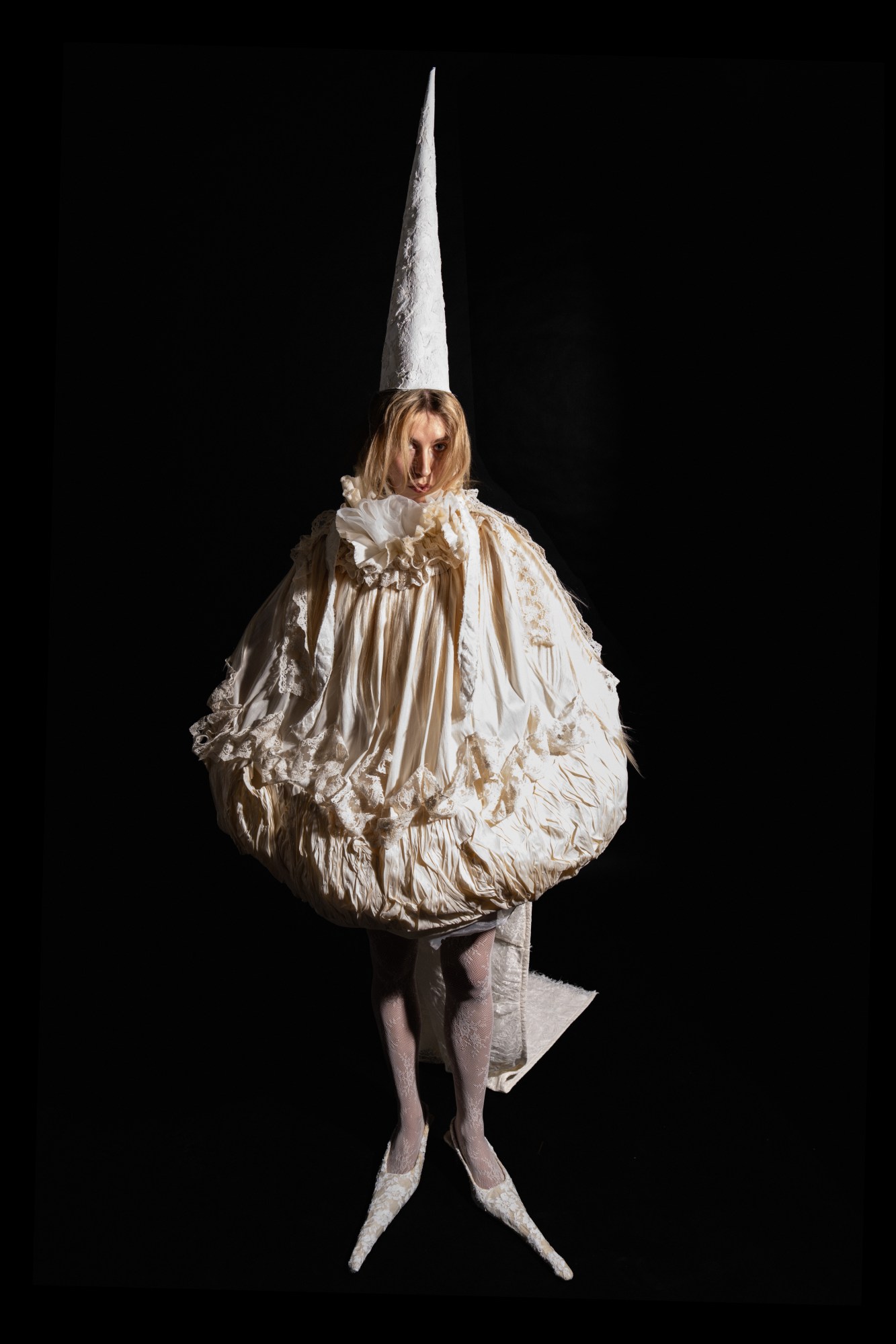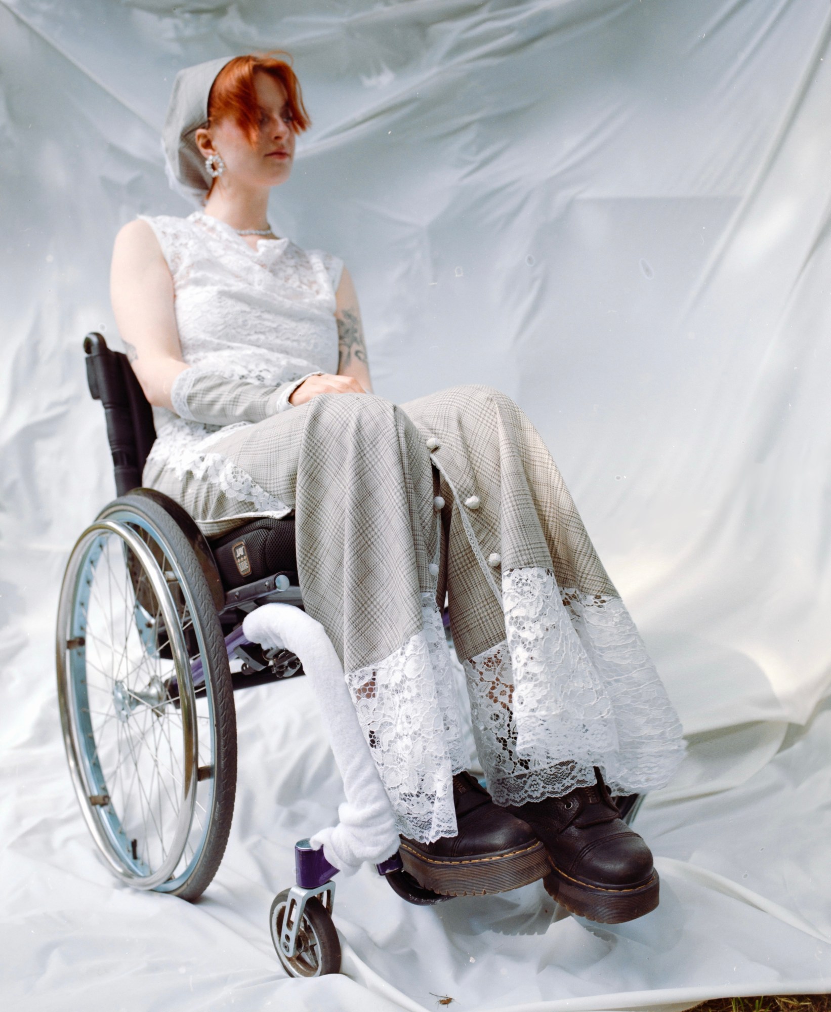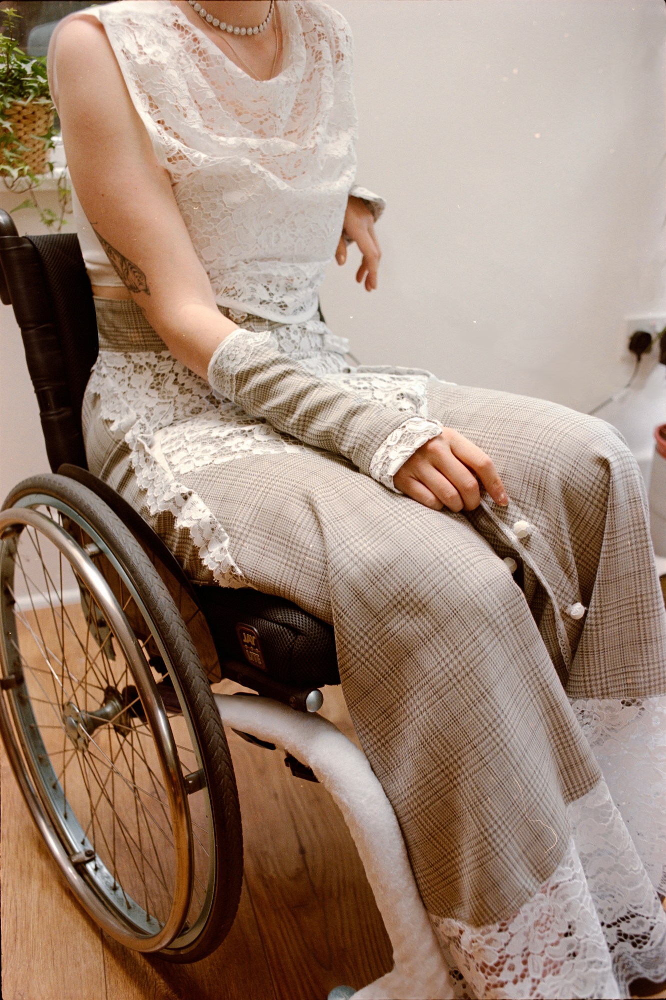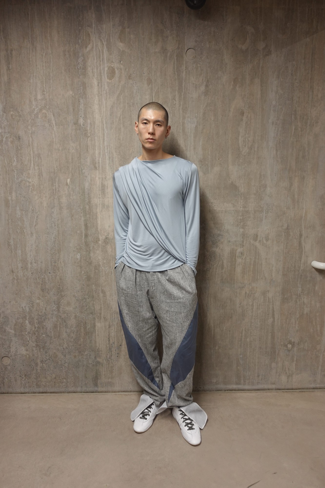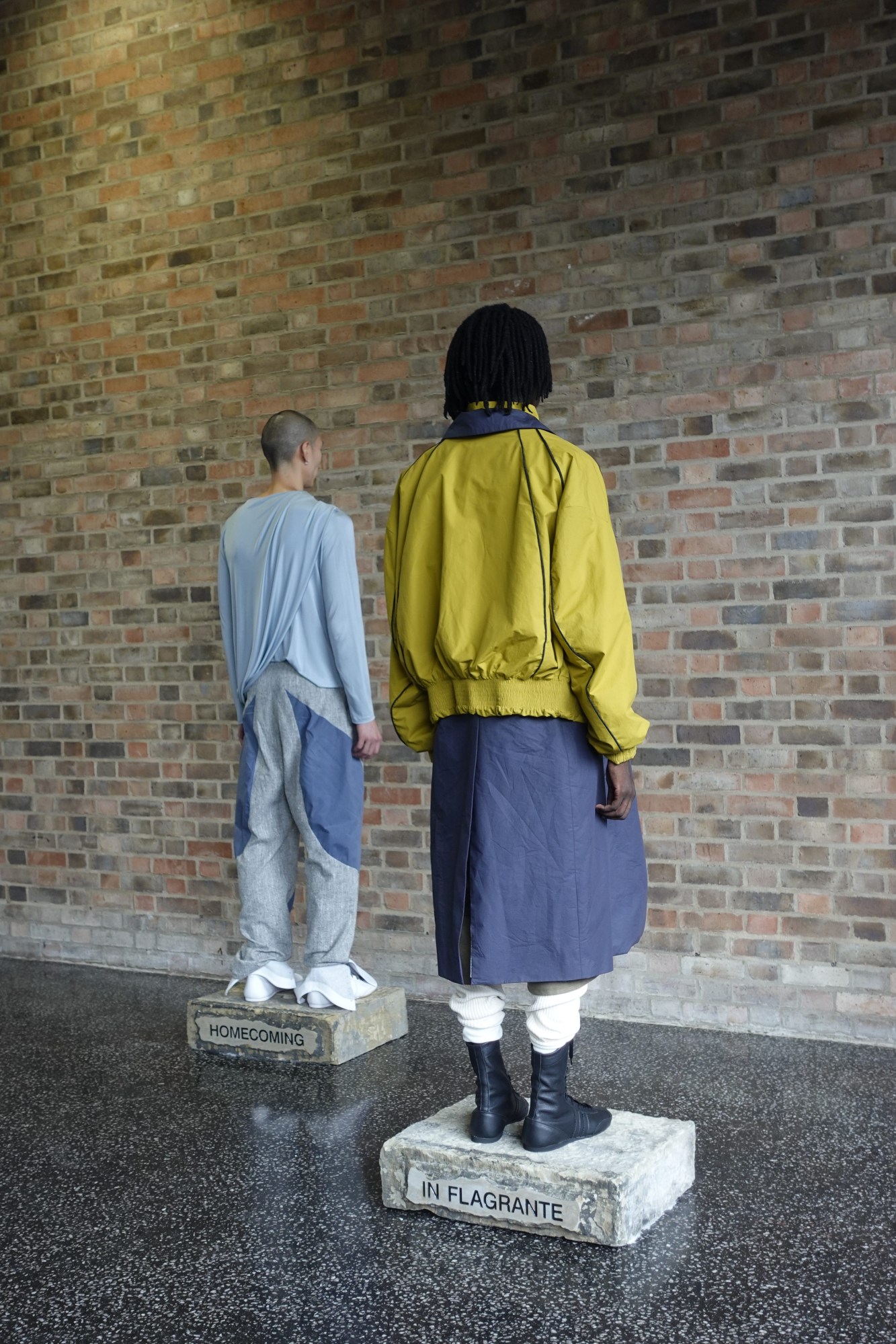 Meg Dennis’s Bowler Back explored an unspoken language between objects and their owners, collaging different hats—each with its own sentiment—into a new visual grammar. In What do I wear?, Huili Jin collaborated with model and wheelchair user Zander to reengineer garments so clothing adapts to people. One design featured trousers meant to be pulled on overhead, offering a blueprint for a more accessible fashion system. HWKIM (Hyunwoo Kim) closed with Redelinquentation, re-cutting school uniforms to explore the space between compliance and quiet rebellion, turning dress codes into prompts for self-questioning rather than conformity.