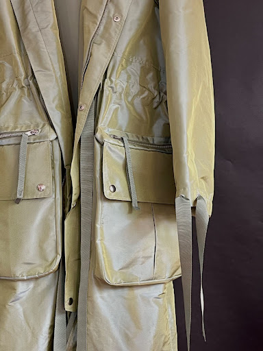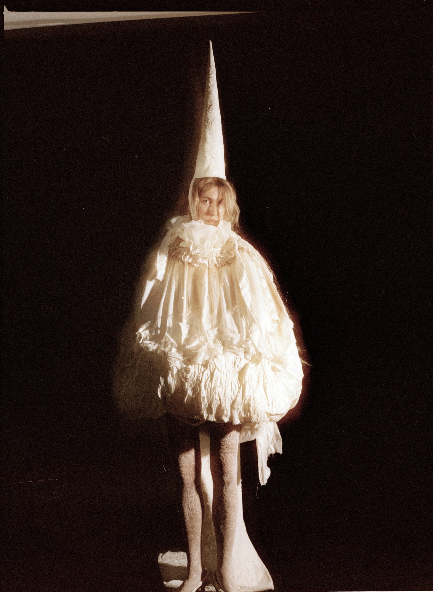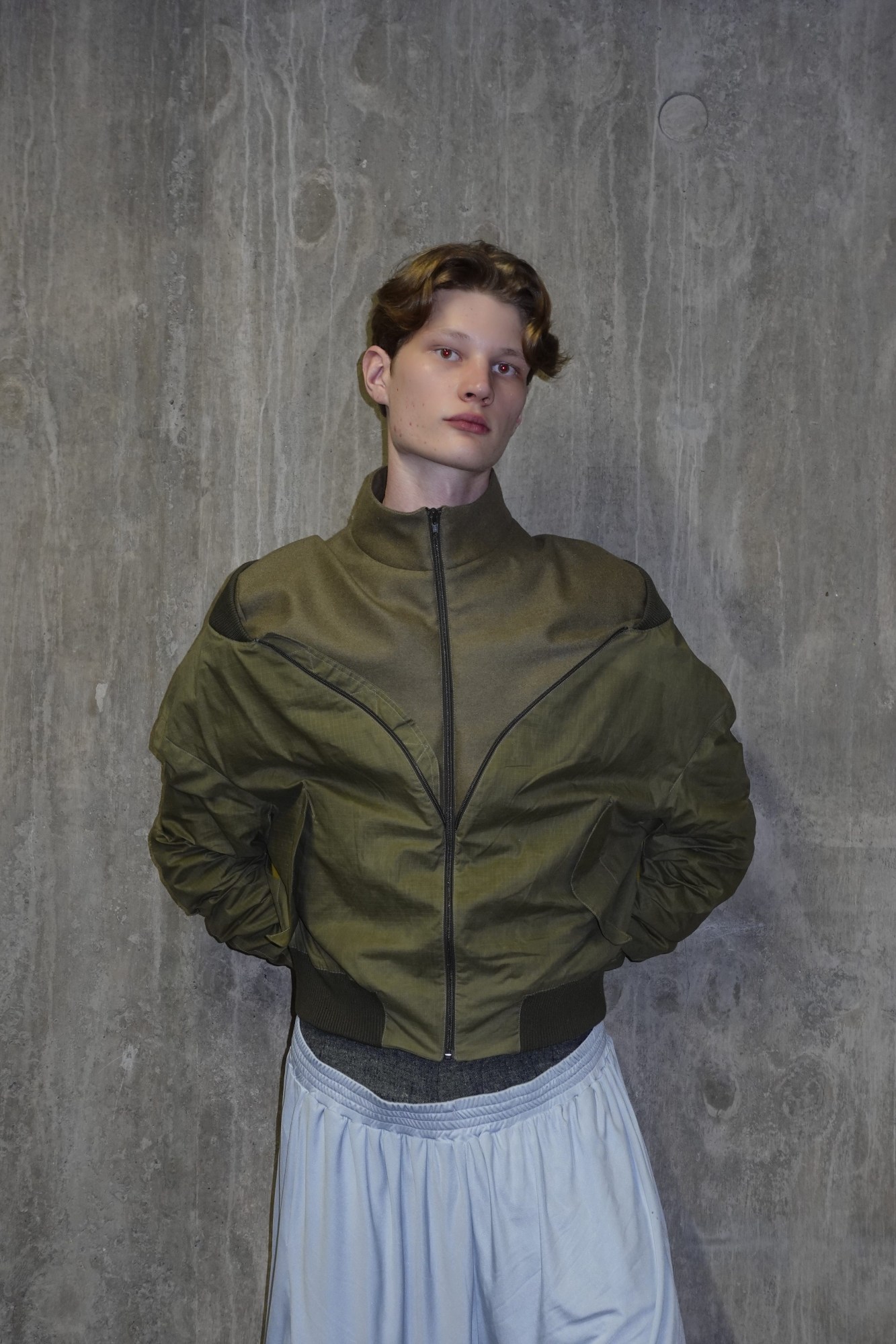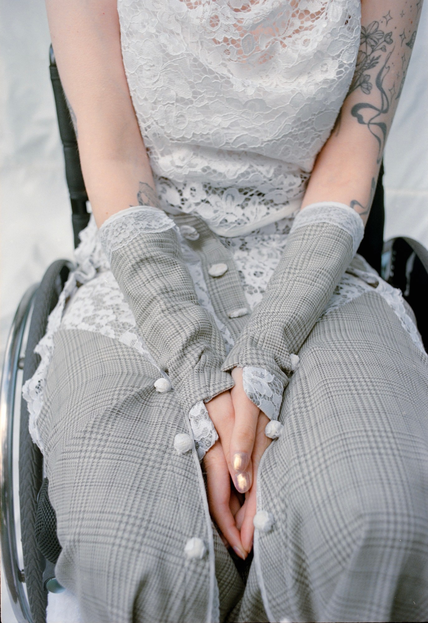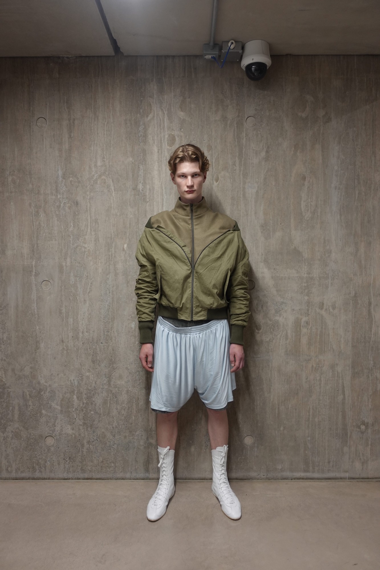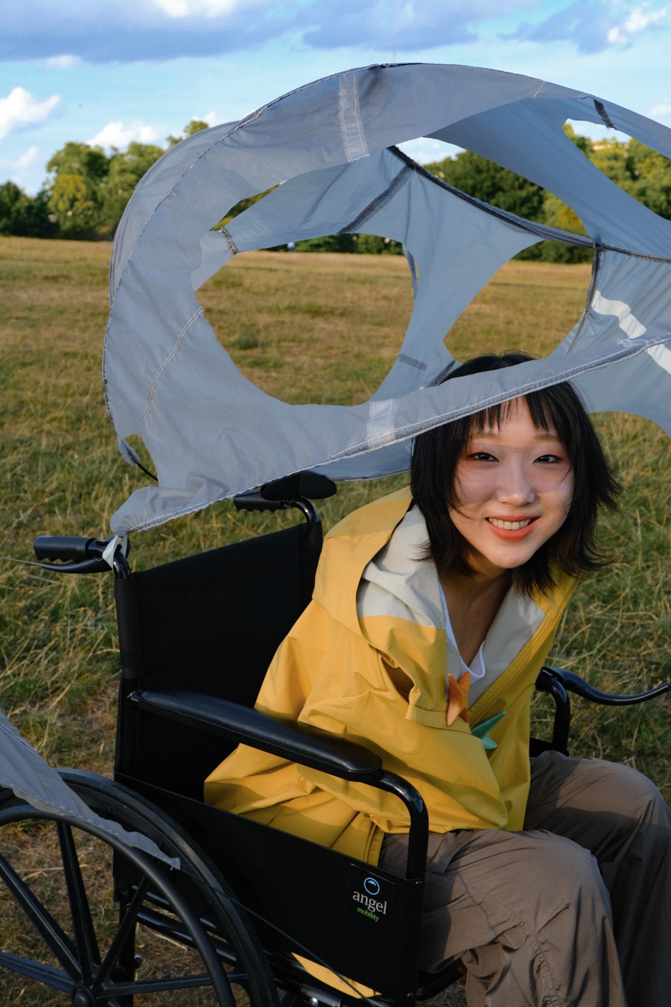 Meg Dennis’s Bowler Back explored an unspoken language between objects and their owners, collaging different hats—each with its own sentiment—into a new visual grammar. In What do I wear?, Huili Jin collaborated with model and wheelchair user Zander to reengineer garments so clothing adapts to people. One design featured trousers meant to be pulled on overhead, offering a blueprint for a more accessible fashion system. HWKIM (Hyunwoo Kim) closed with Redelinquentation, re-cutting school uniforms to explore the space between compliance and quiet rebellion, turning dress codes into prompts for self-questioning rather than conformity.